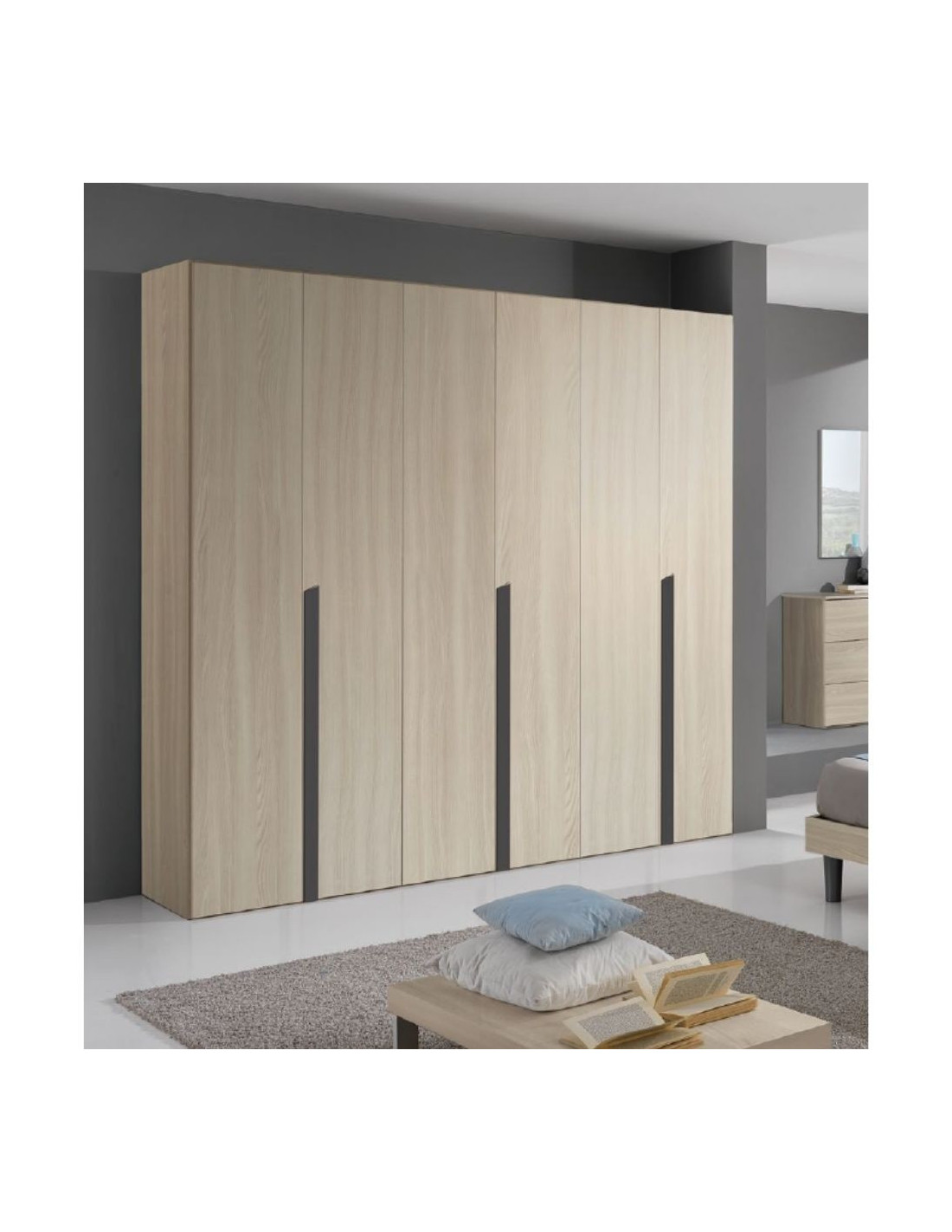 Armadio 6 ante battenti. Spessore fianchi 18 mm. e ripiani 22 mm. Struttura colore e frontali olmo.