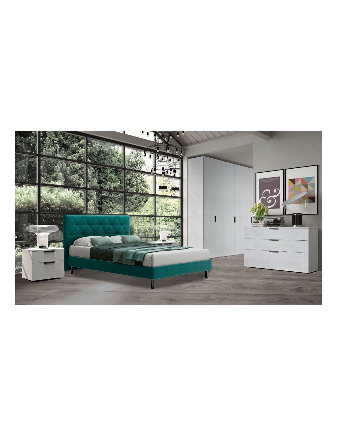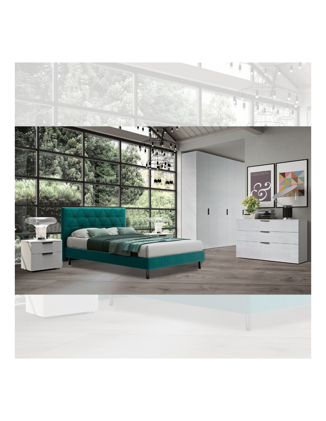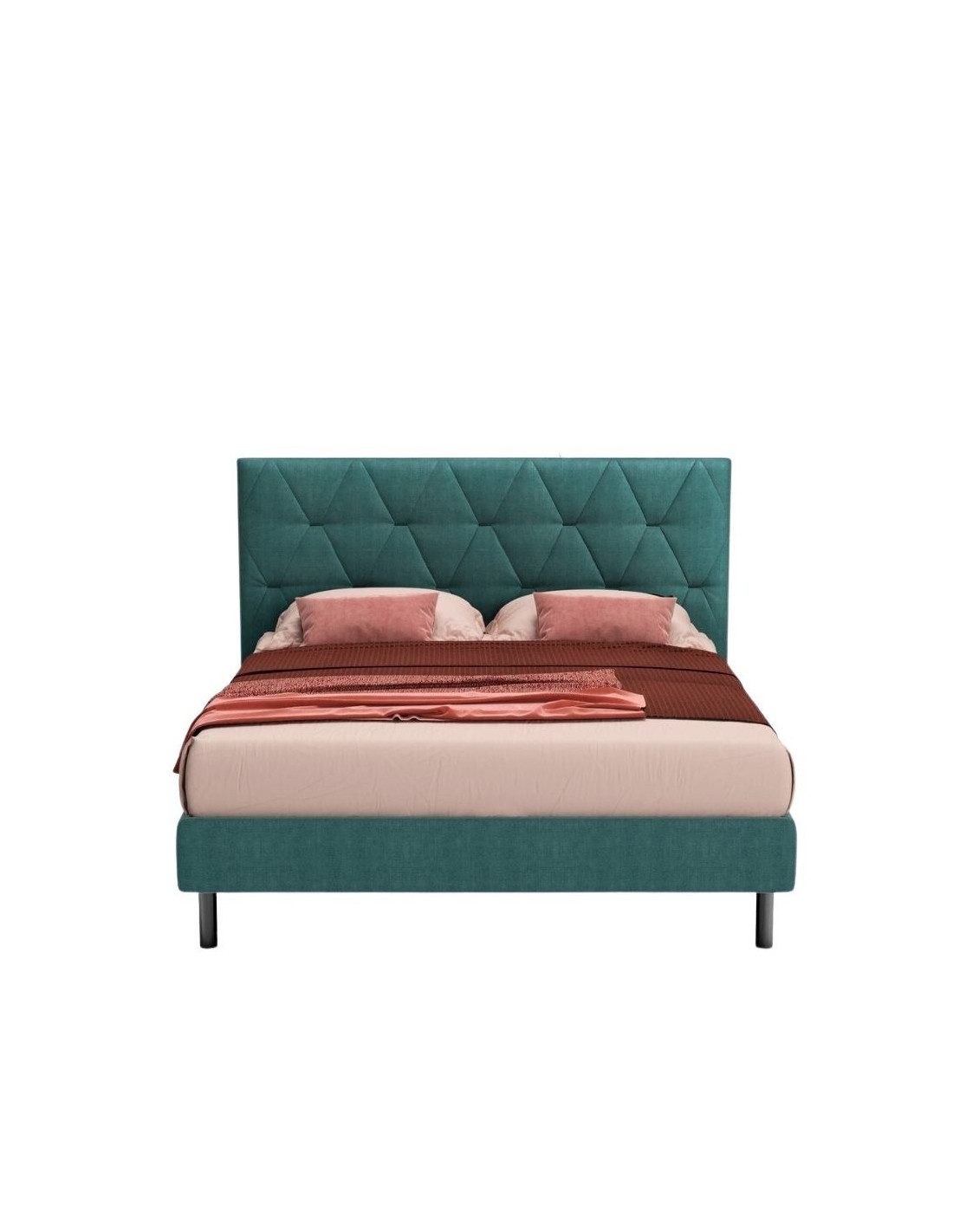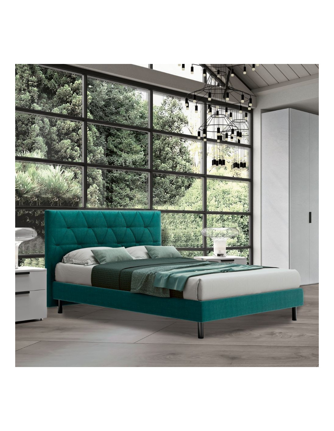 Letto matrimoniale contenitore basso in tessuto turchese Cody.