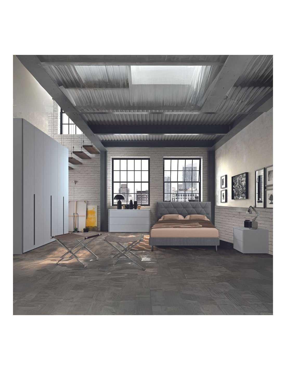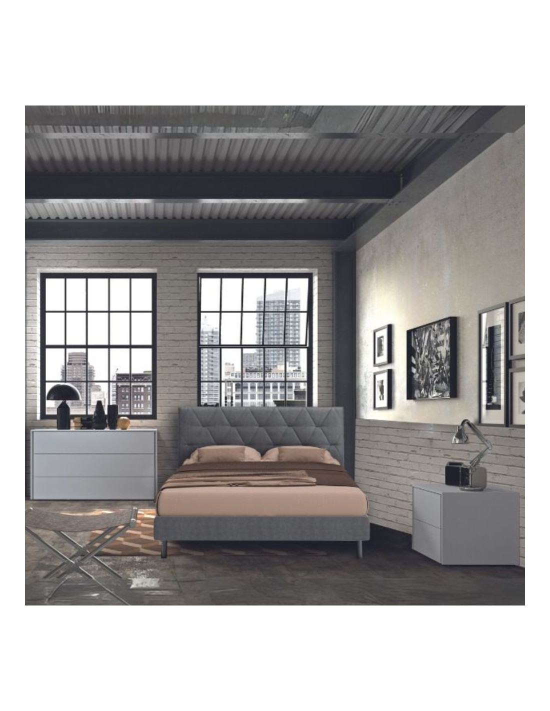 Letto matrimoniale contenitore basso in tessuto grigio scuro Cody.