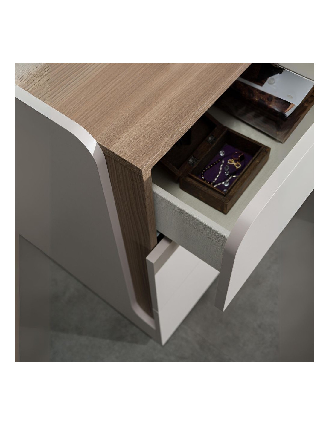 - Comodino 2 cassetti, spessore 18 mm.