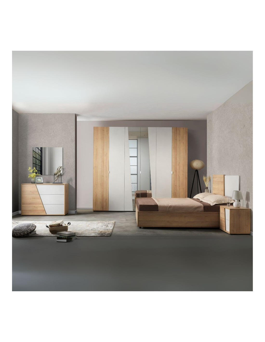 Camera da letto Fadri colore calce grigio chiaro e rovere miele