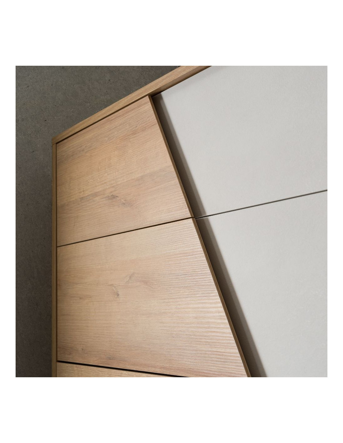 Camere da letto Fadri colore calce grigio chiaro e rovere miele