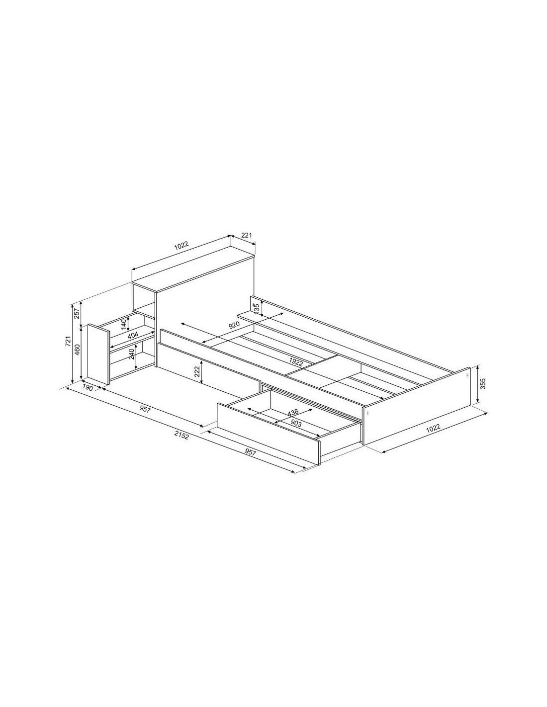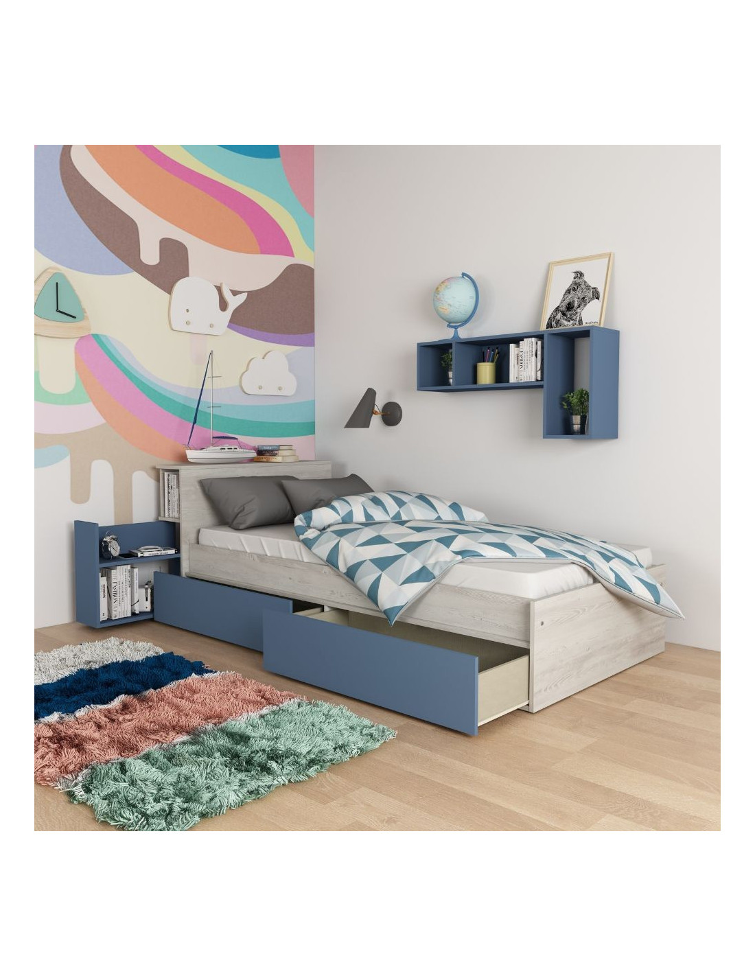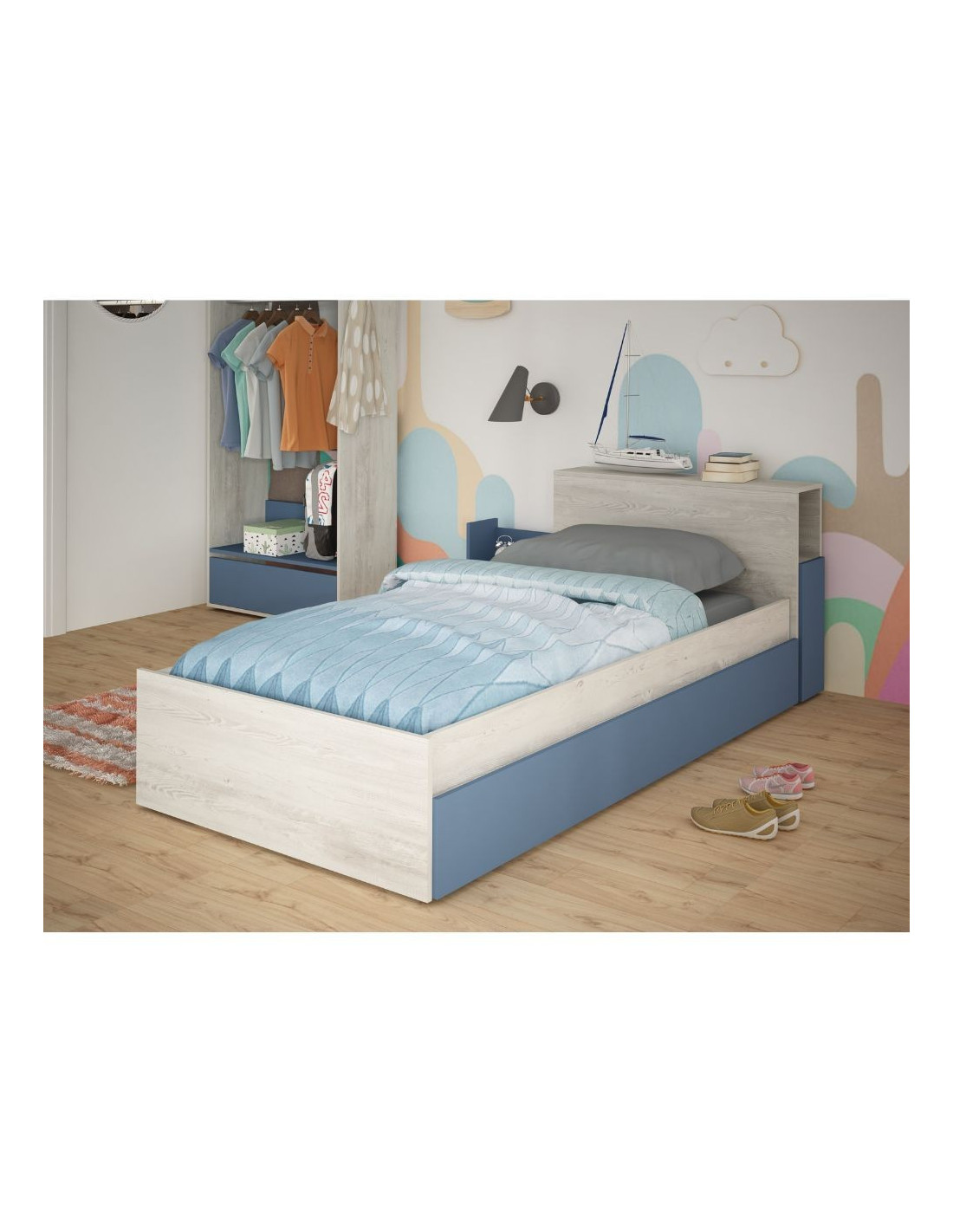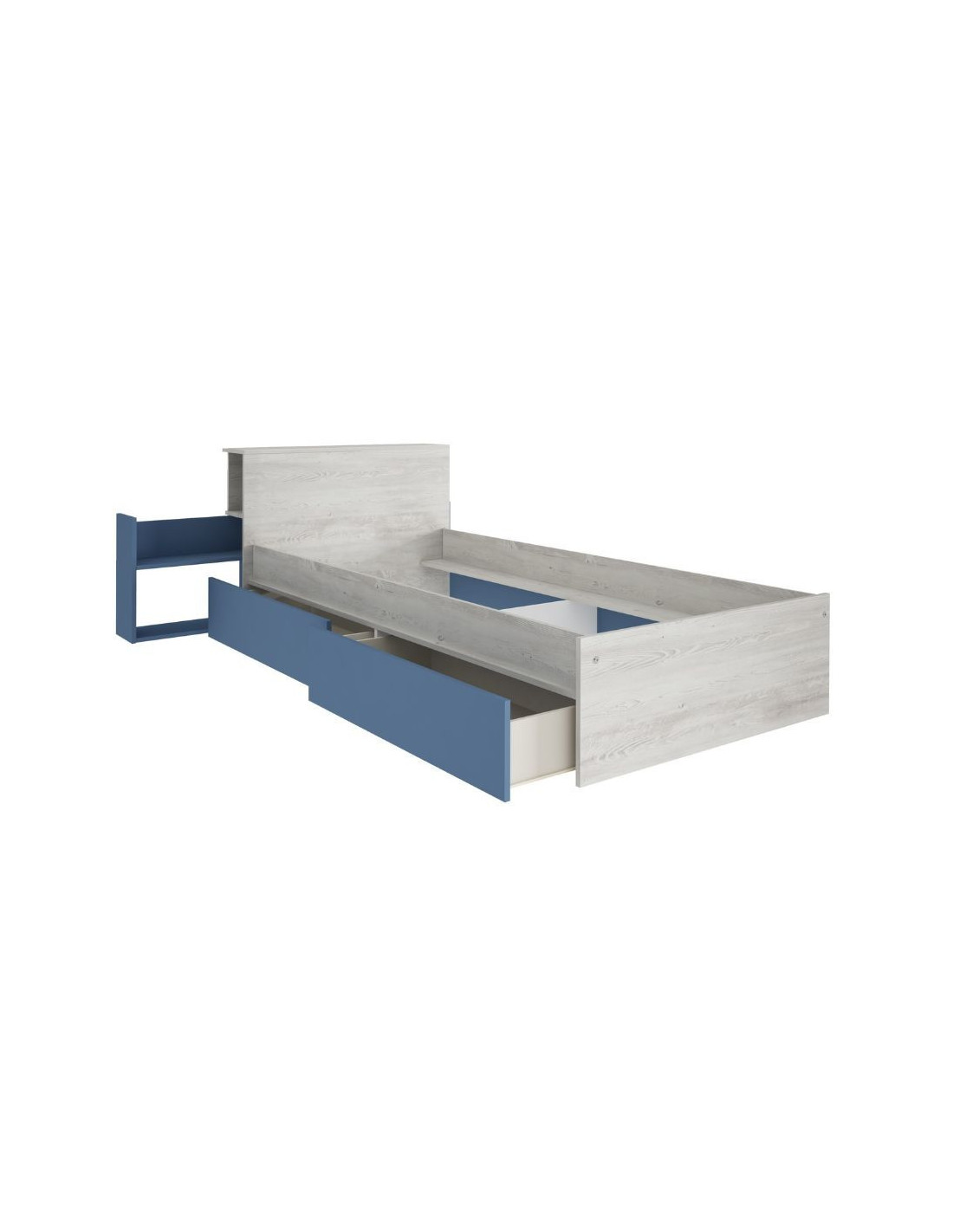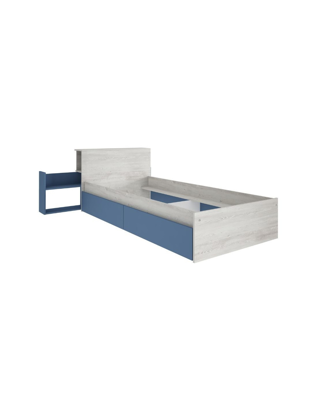 Letto singolo 1660 bianco celeste con comodino estraibile