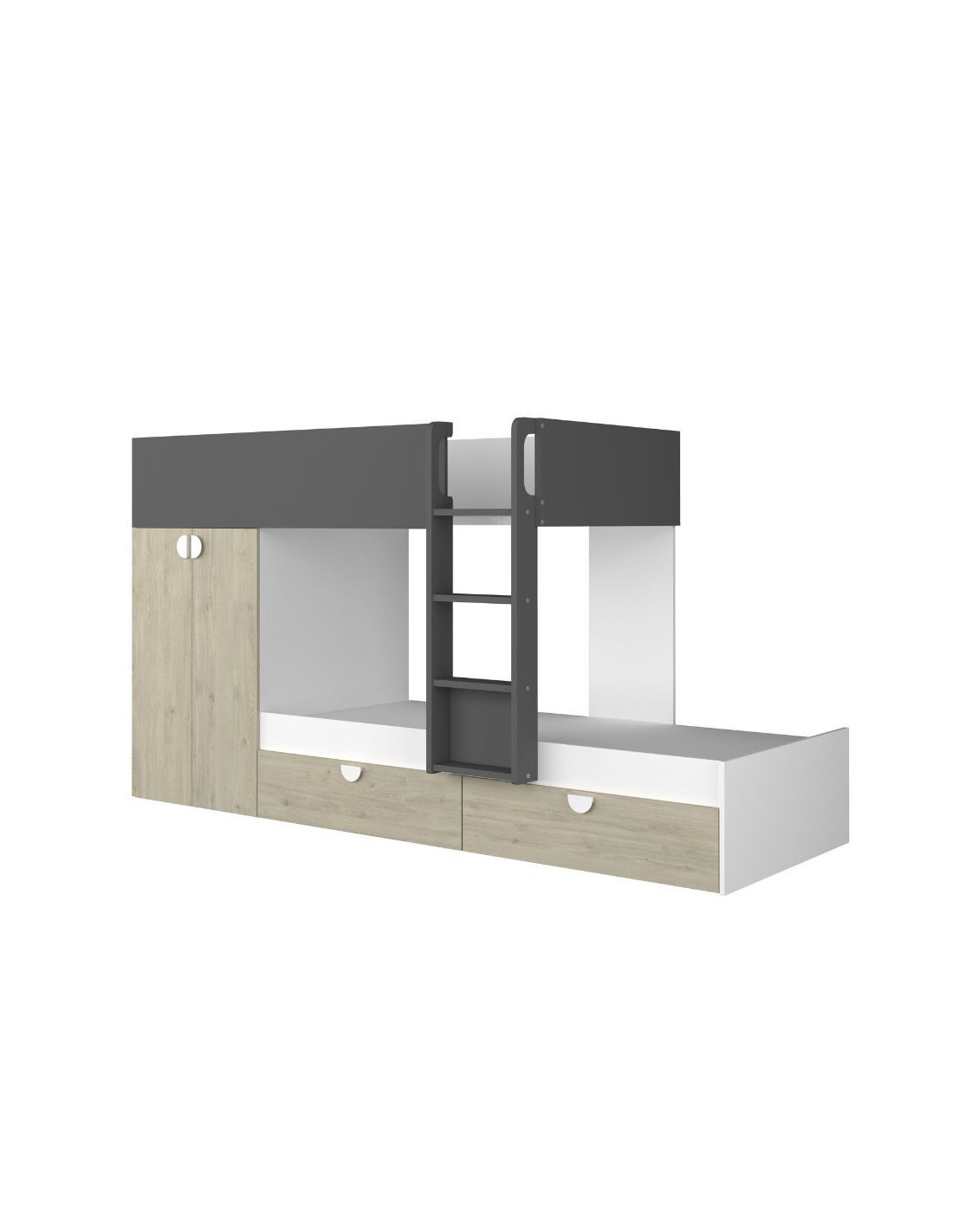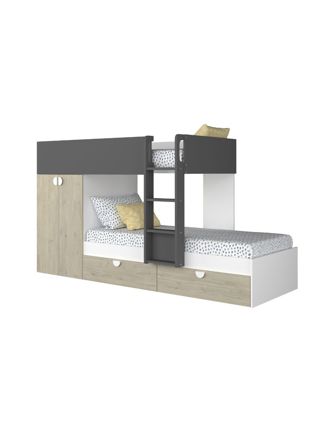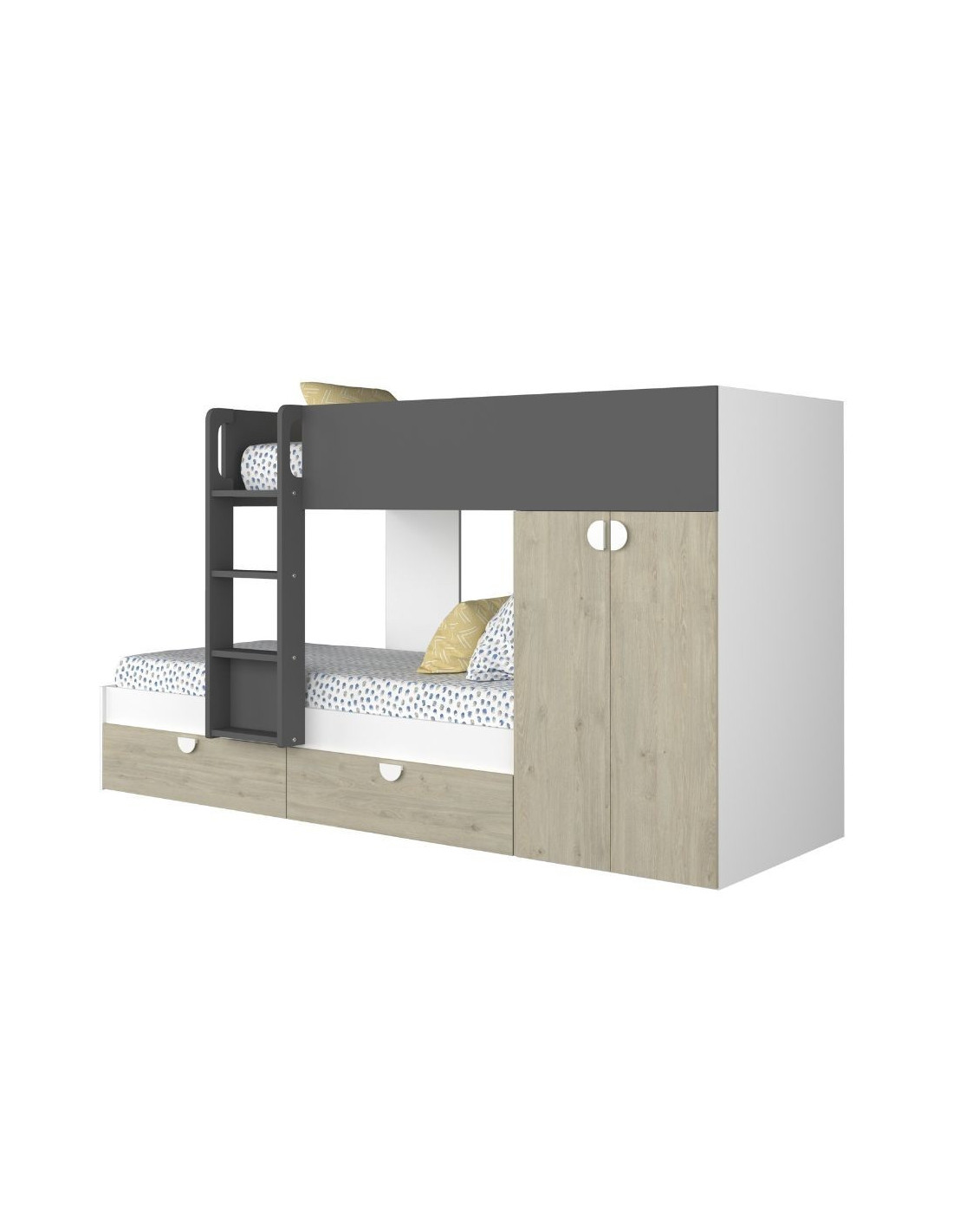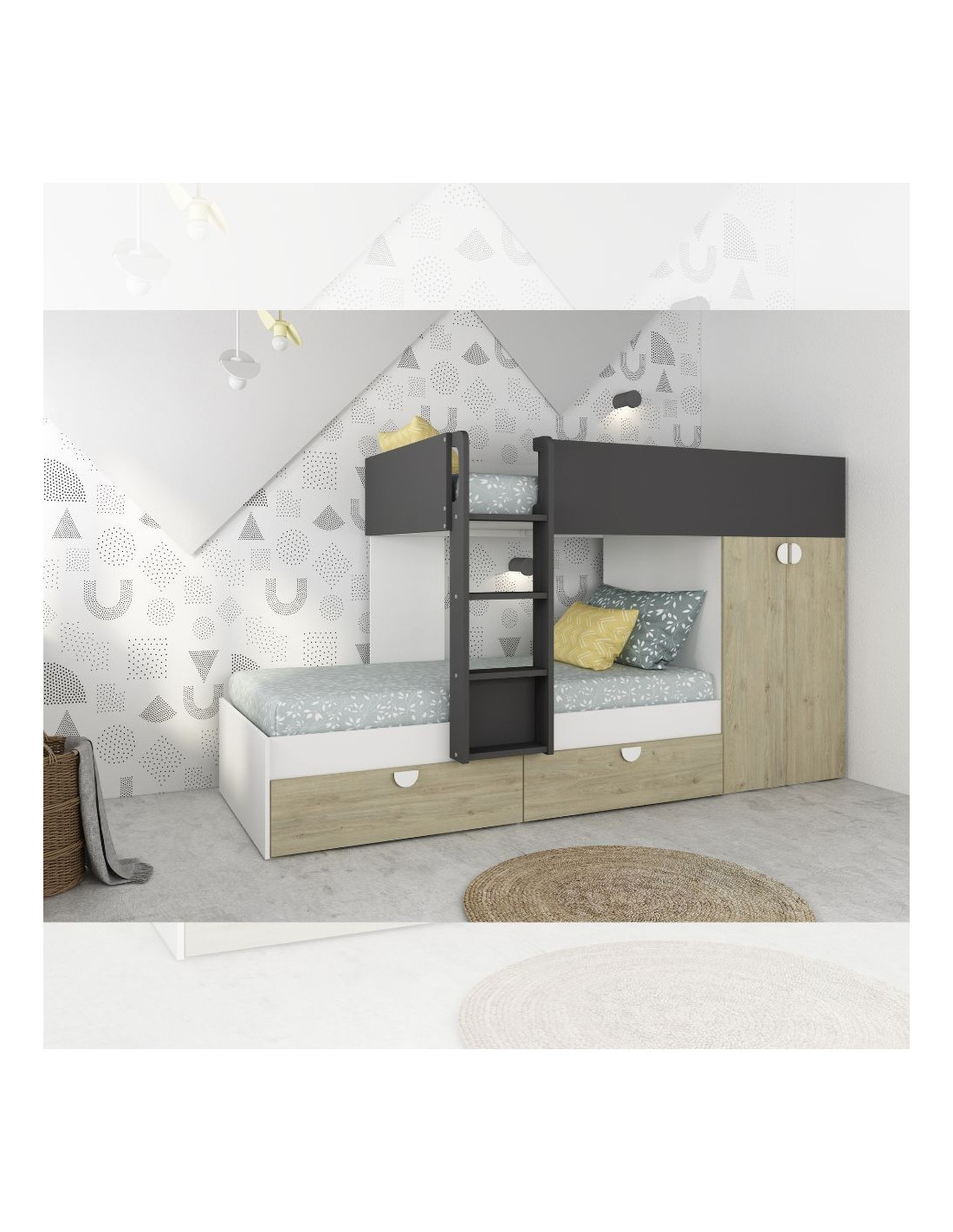 Cameretta con letto a castello con cassettoni e armadio reversibile colore rovere e antracite