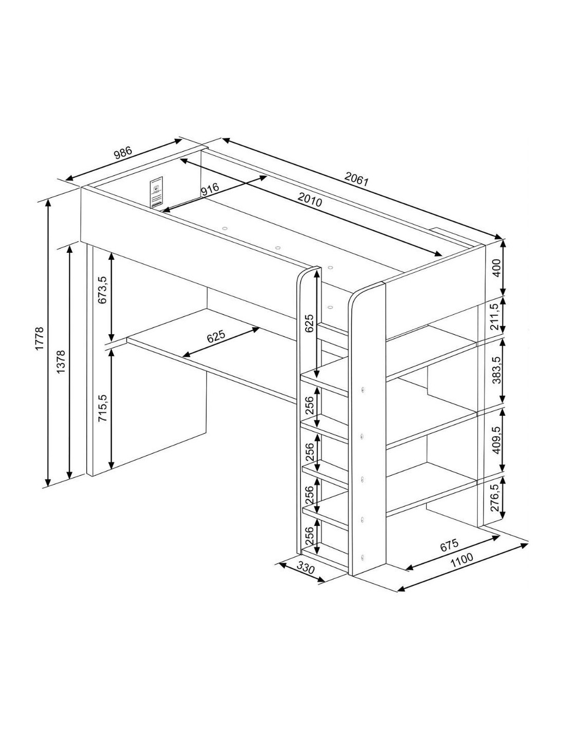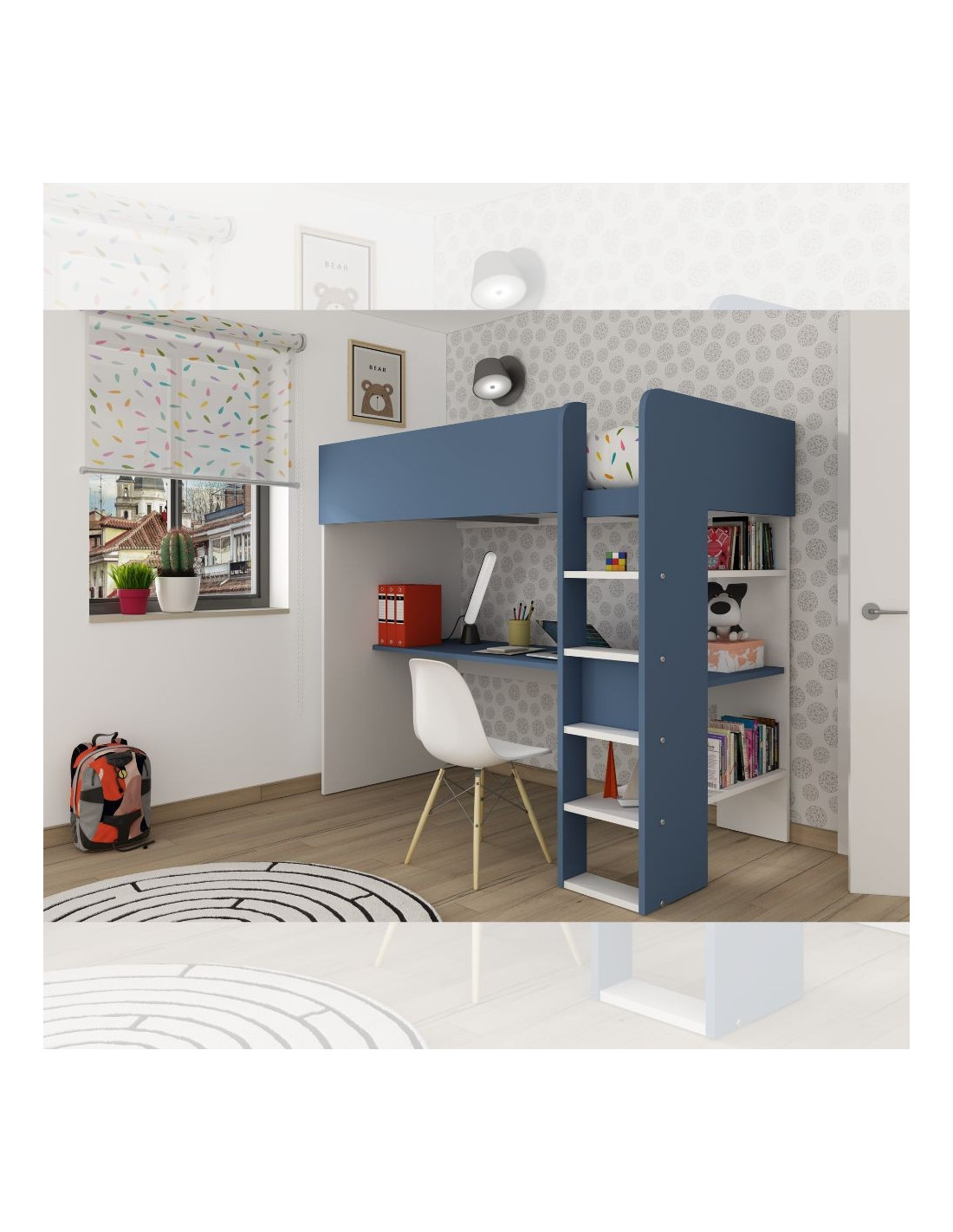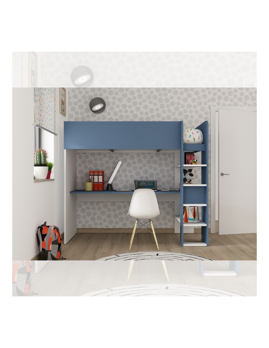 Cameretta 2276 con letto a soppalco con scrivania sottostante colore bianco e azzurro