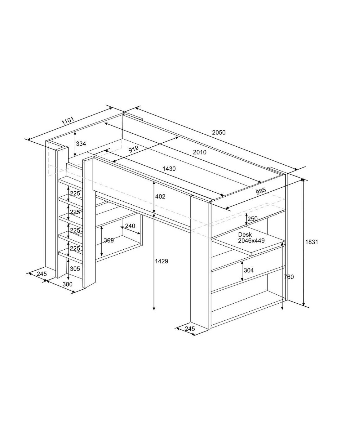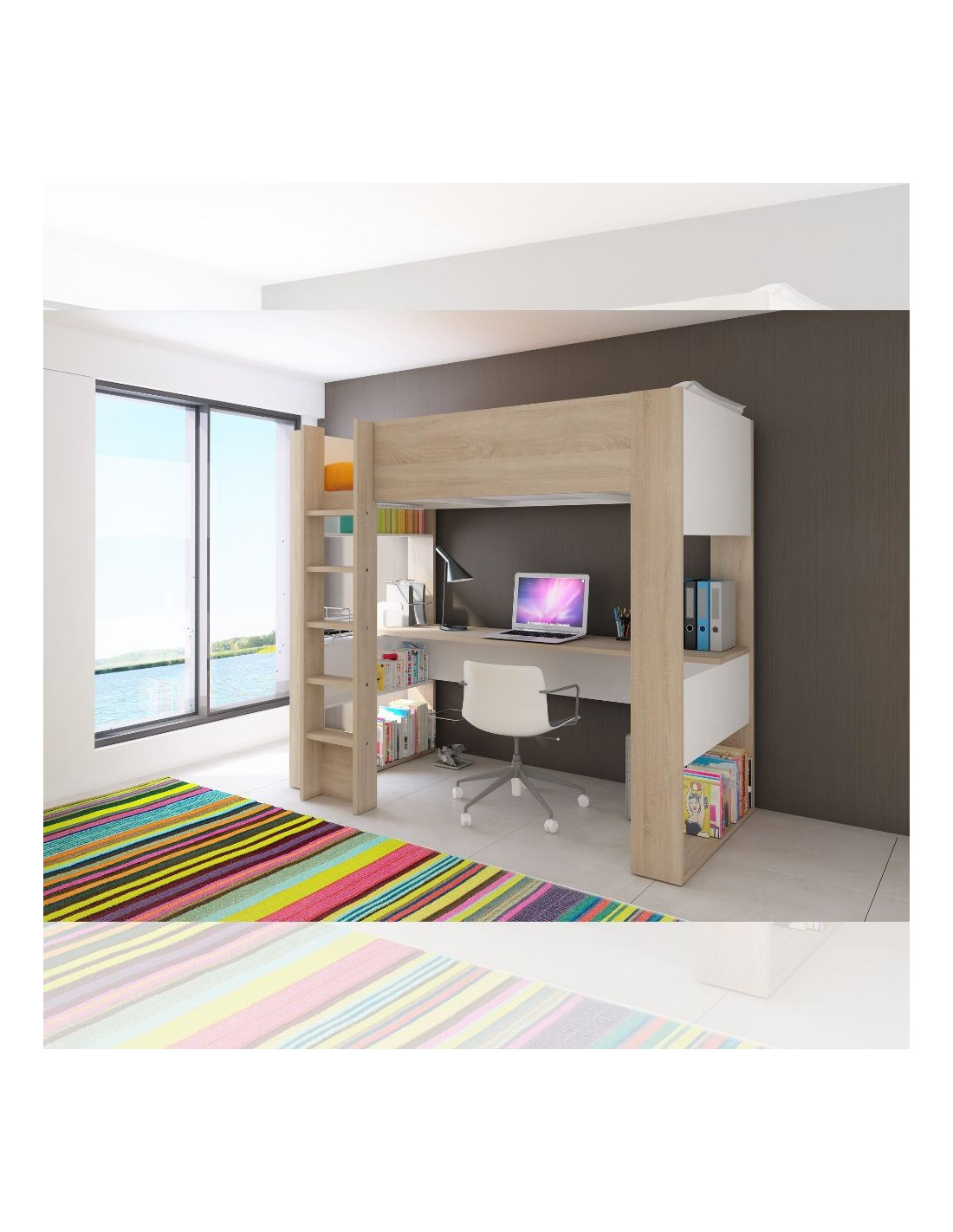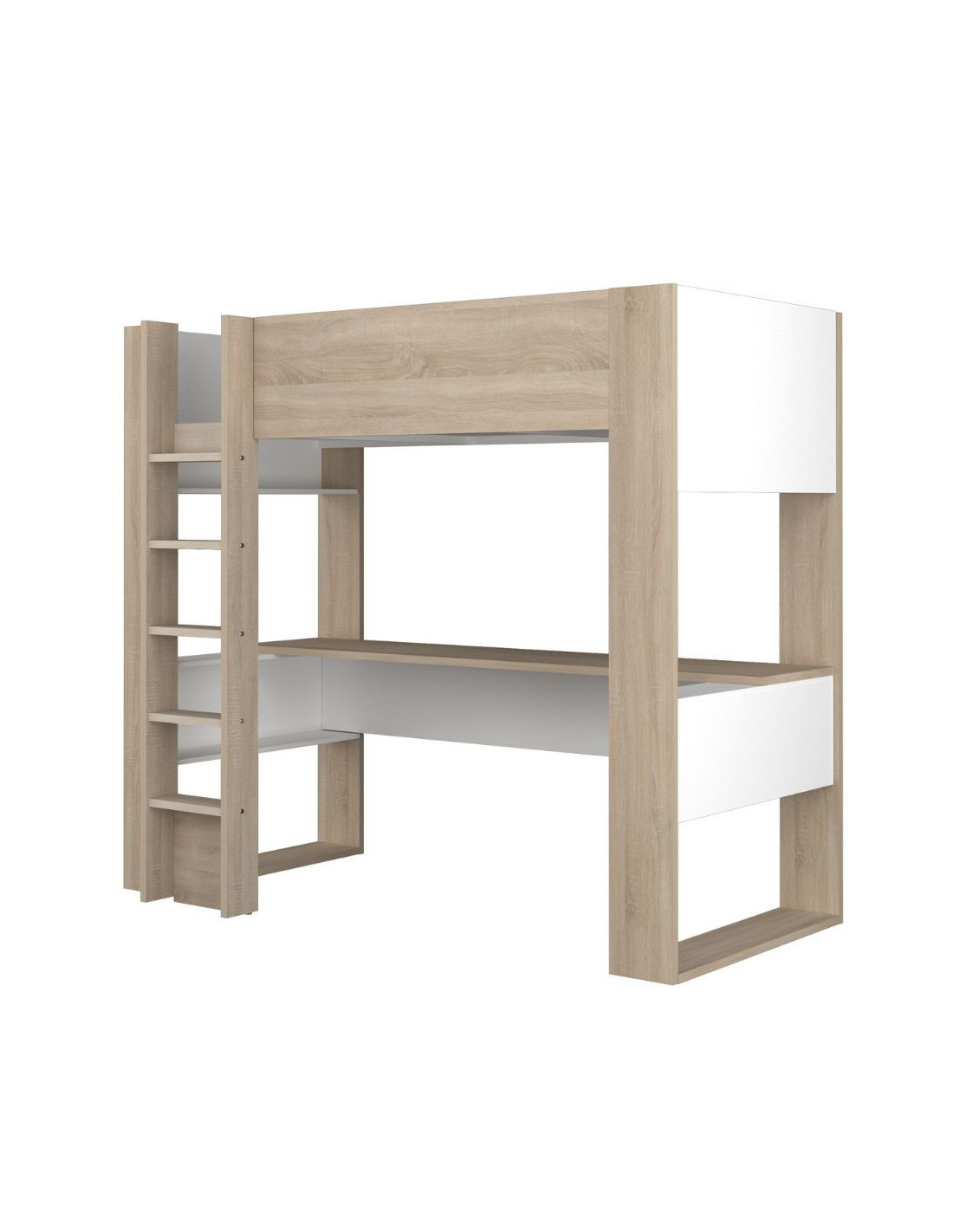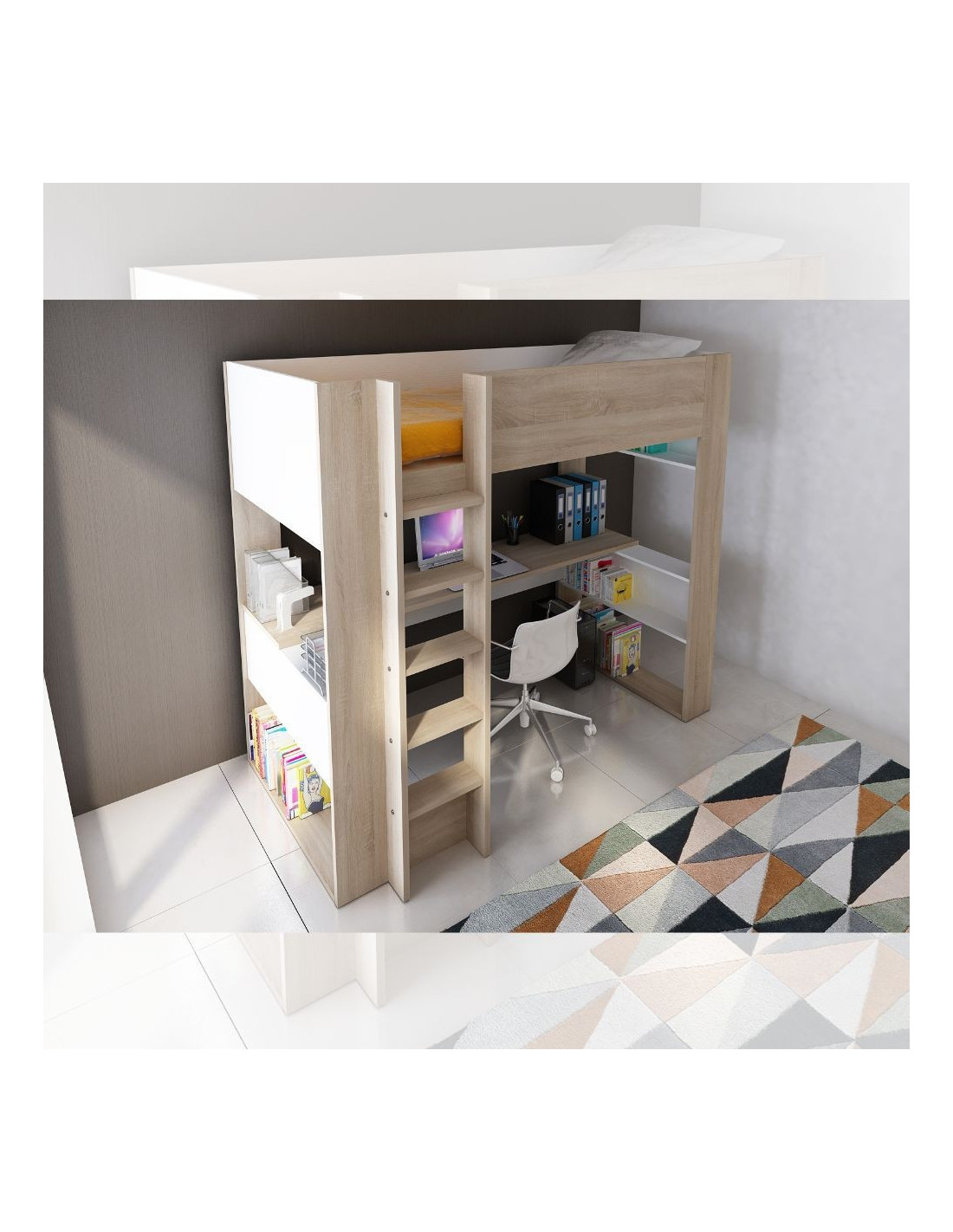 Cameretta 1652 con letto a soppalco e scrivania sottostante colore bianco e rovere