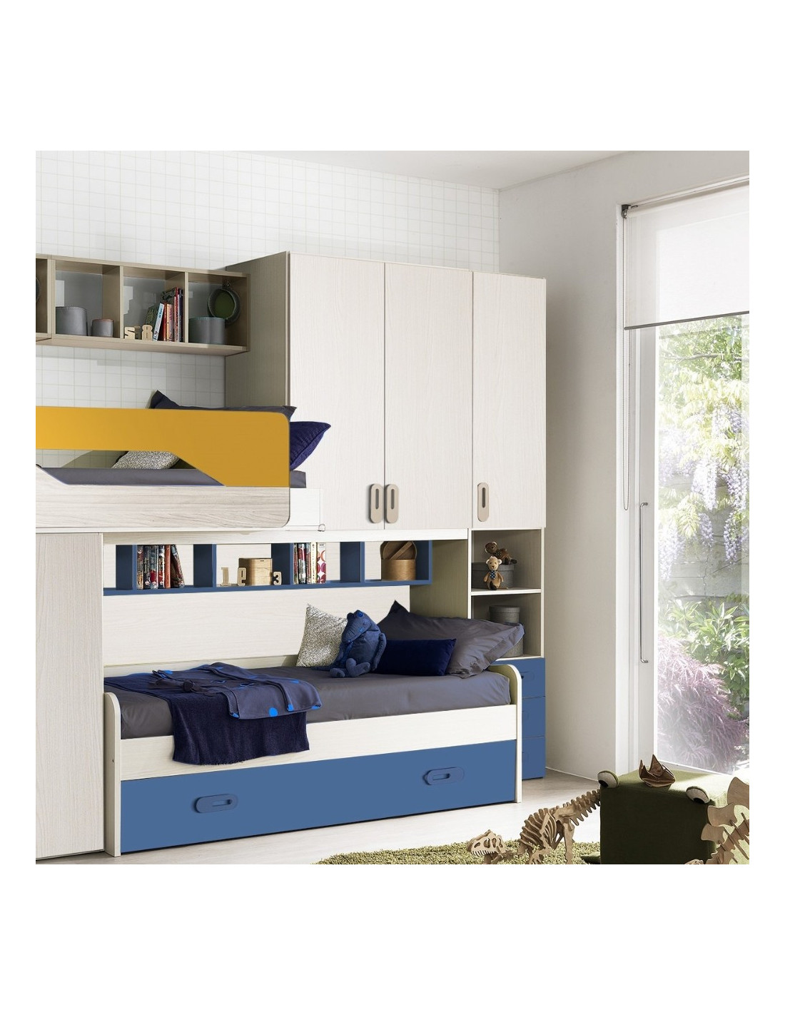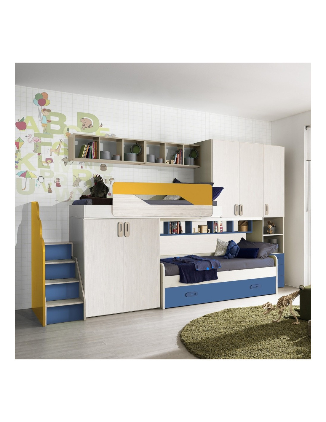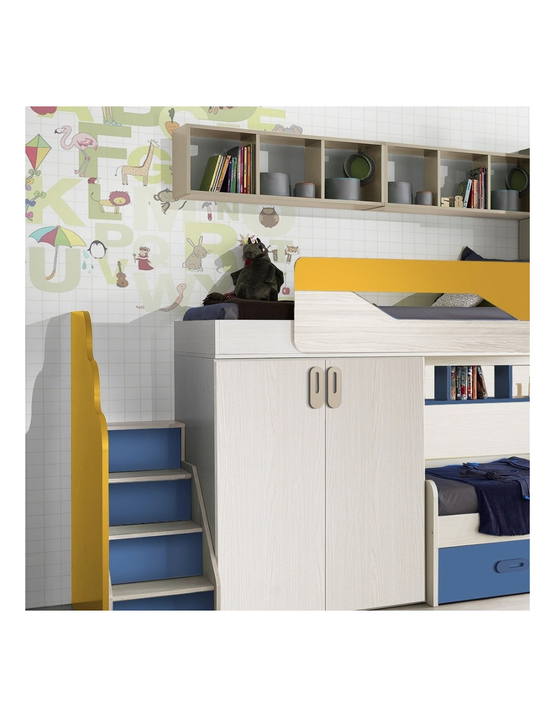 Cameretta soppalco Milly con 3 letti colore kiri avio giallo