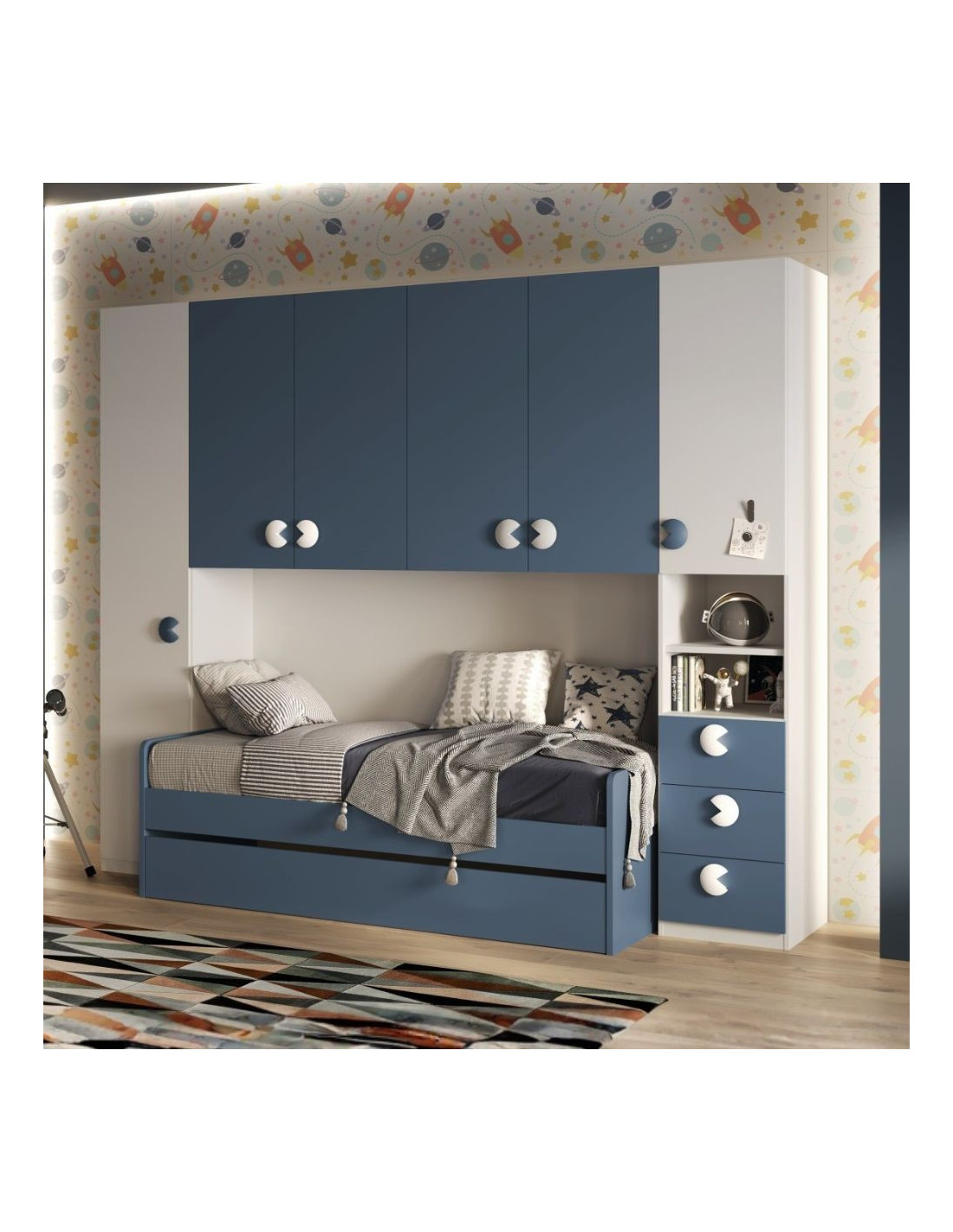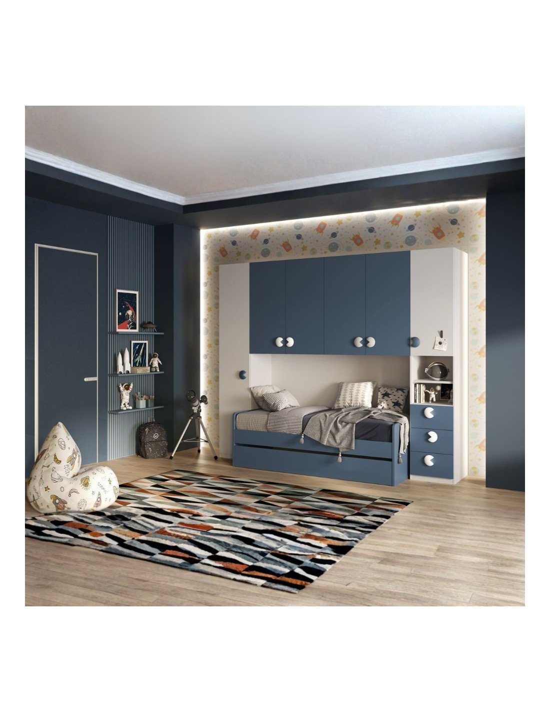 Cameretta a ponte Gilbert bianco opaco e blu navy con letto estraibile