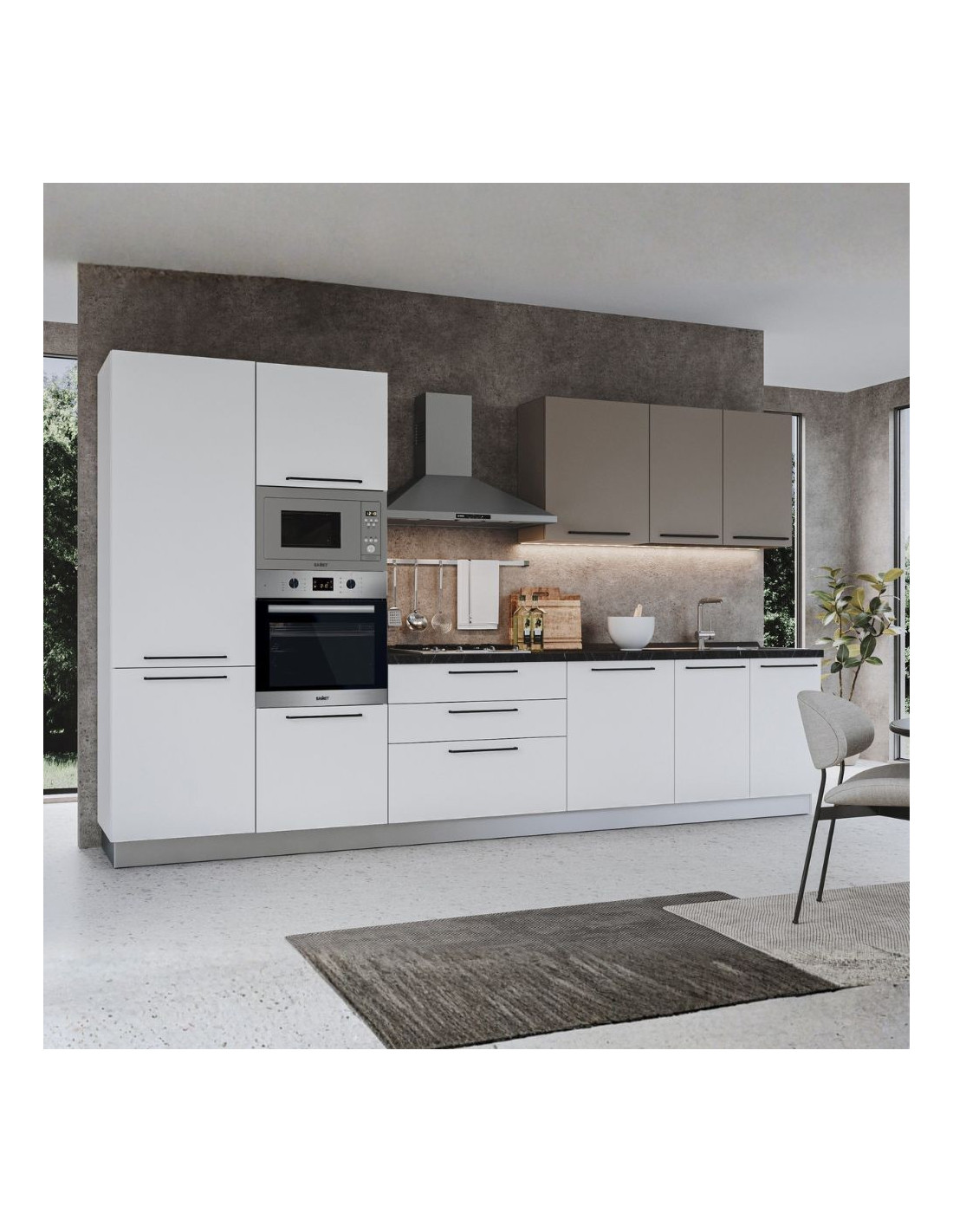 Cucina Iris Lusso 360 cm bianco opaco tortora con elettrodomestici reversibile