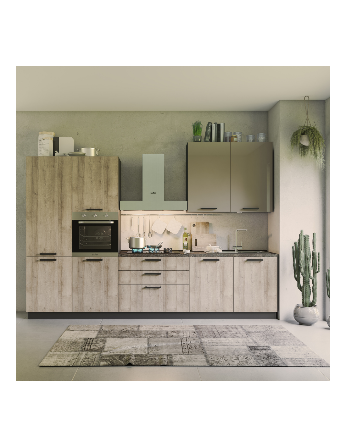 Cucina 330 cm rovere rustico e tortora lucido Durazzo Glam sinistra con lavastoviglie