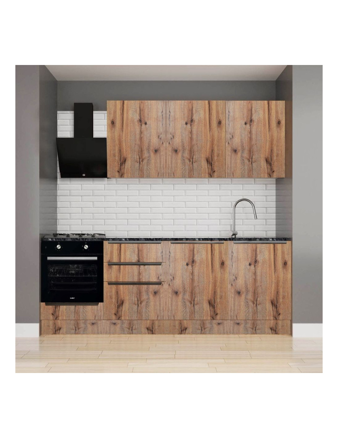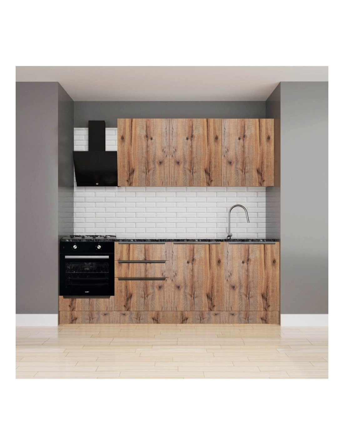 Cucina Casale 240 cm. reversibile con elettrodomestici inclusi con cassa bianca e ante rovere detroit