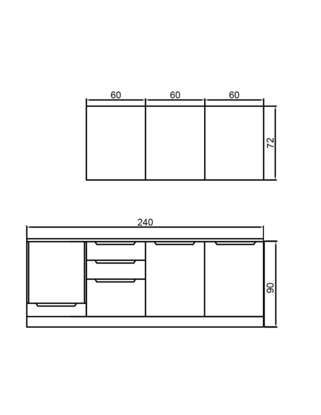 - Base da 60 cm. 2 cassetti e 1 cassettone