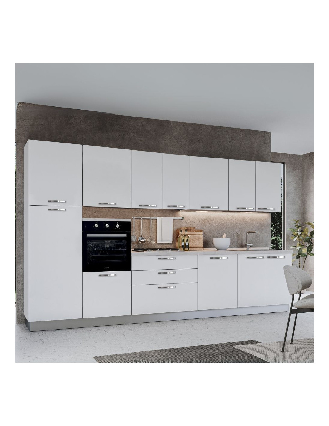 Cucina reversibile Petunia base 360 cm con elettrodomestici inclusi colore bianco lucido