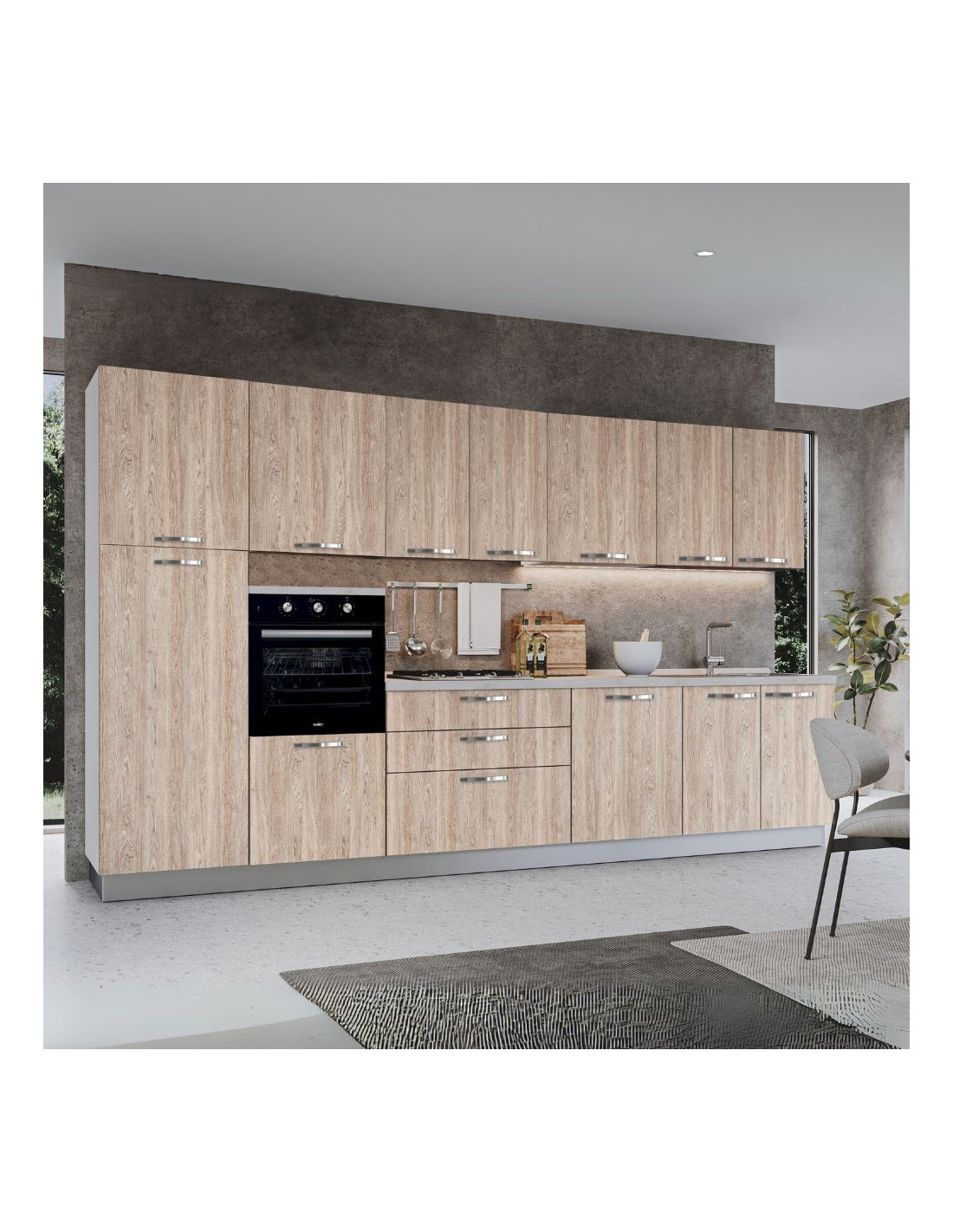 Cucina reversibile Petunia base 360 cm con elettrodomestici inclusi colore rovere gessato naturale