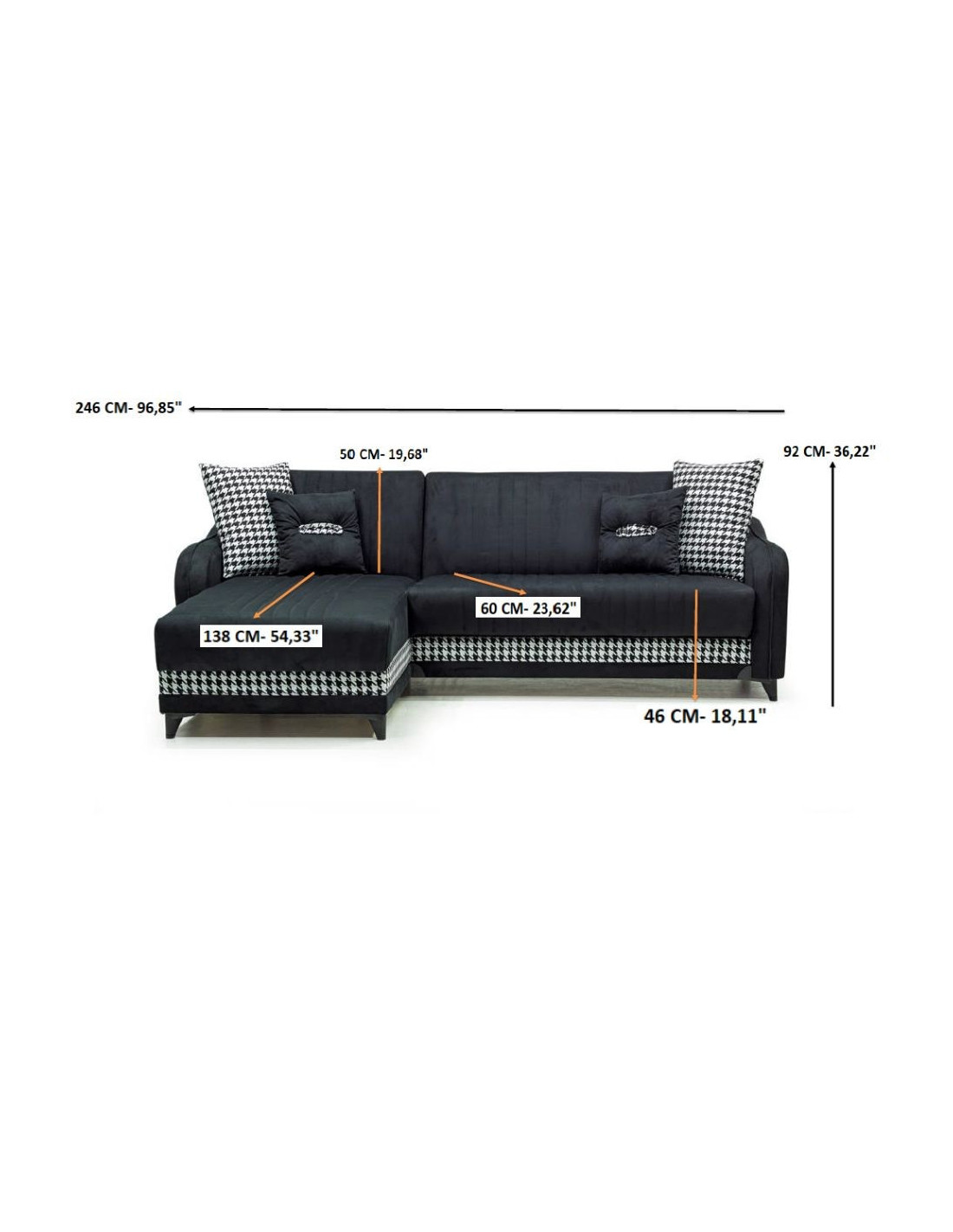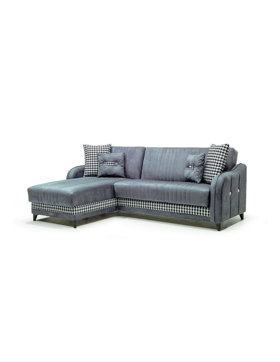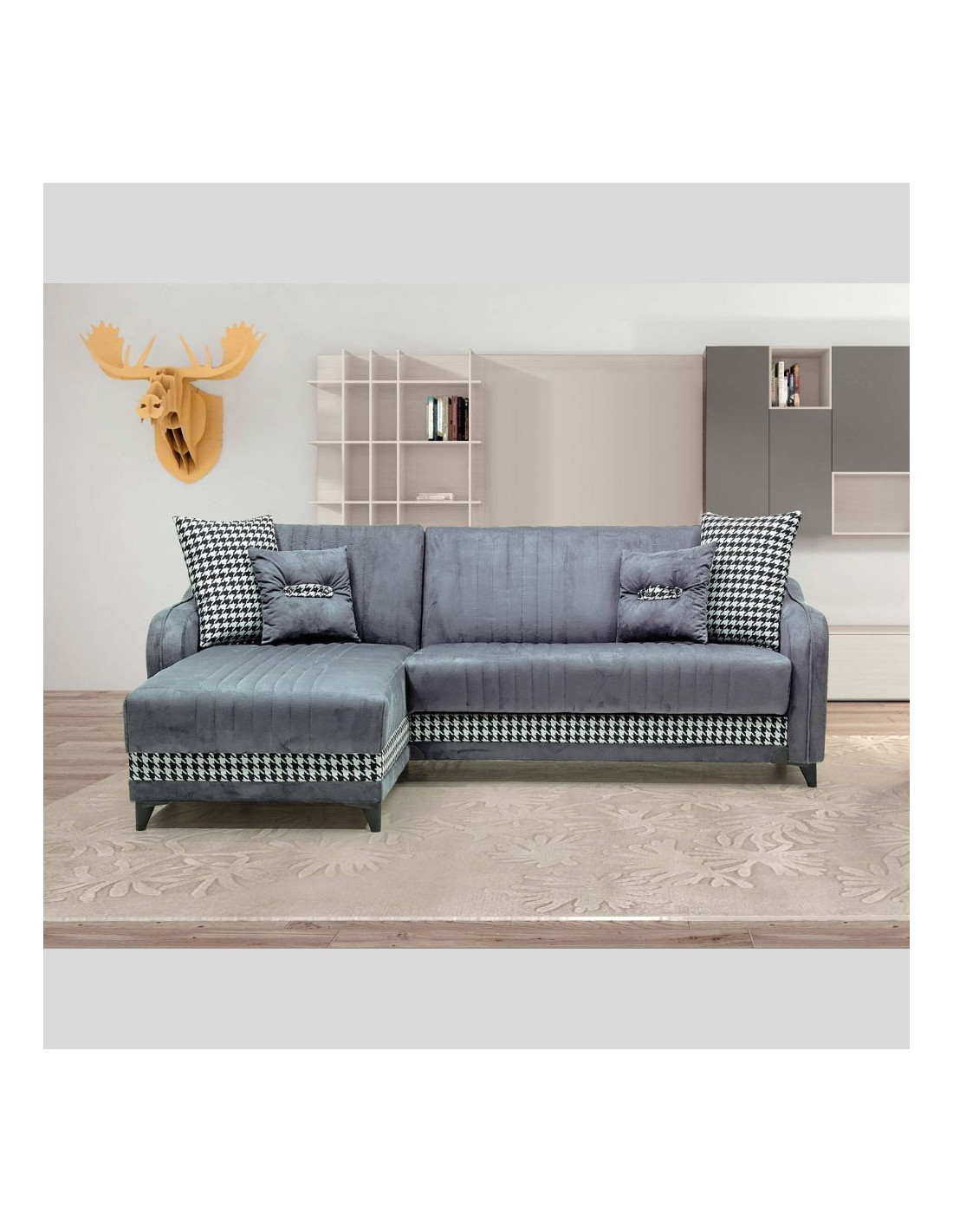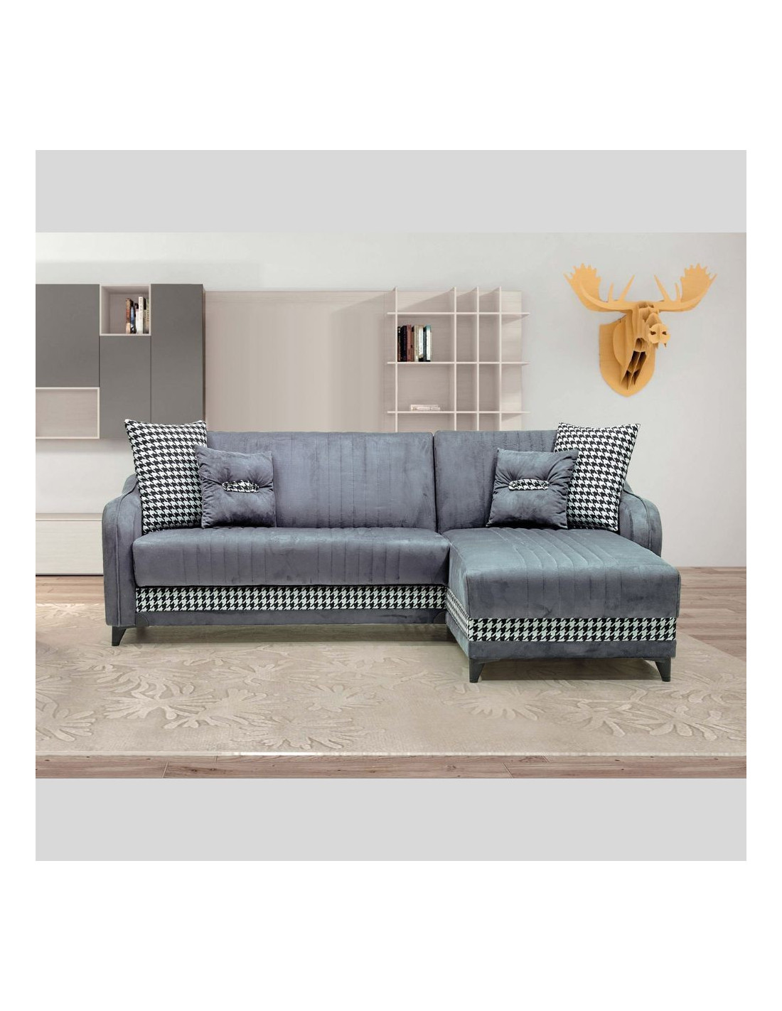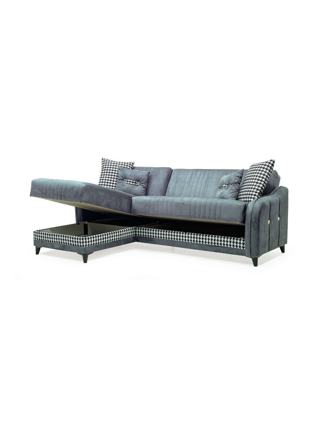 Divano con penisola contenitore reversibile Laos grigio soft 22 246x138x92 H