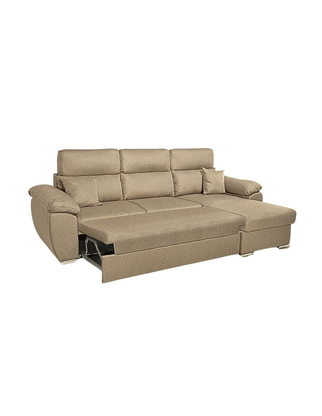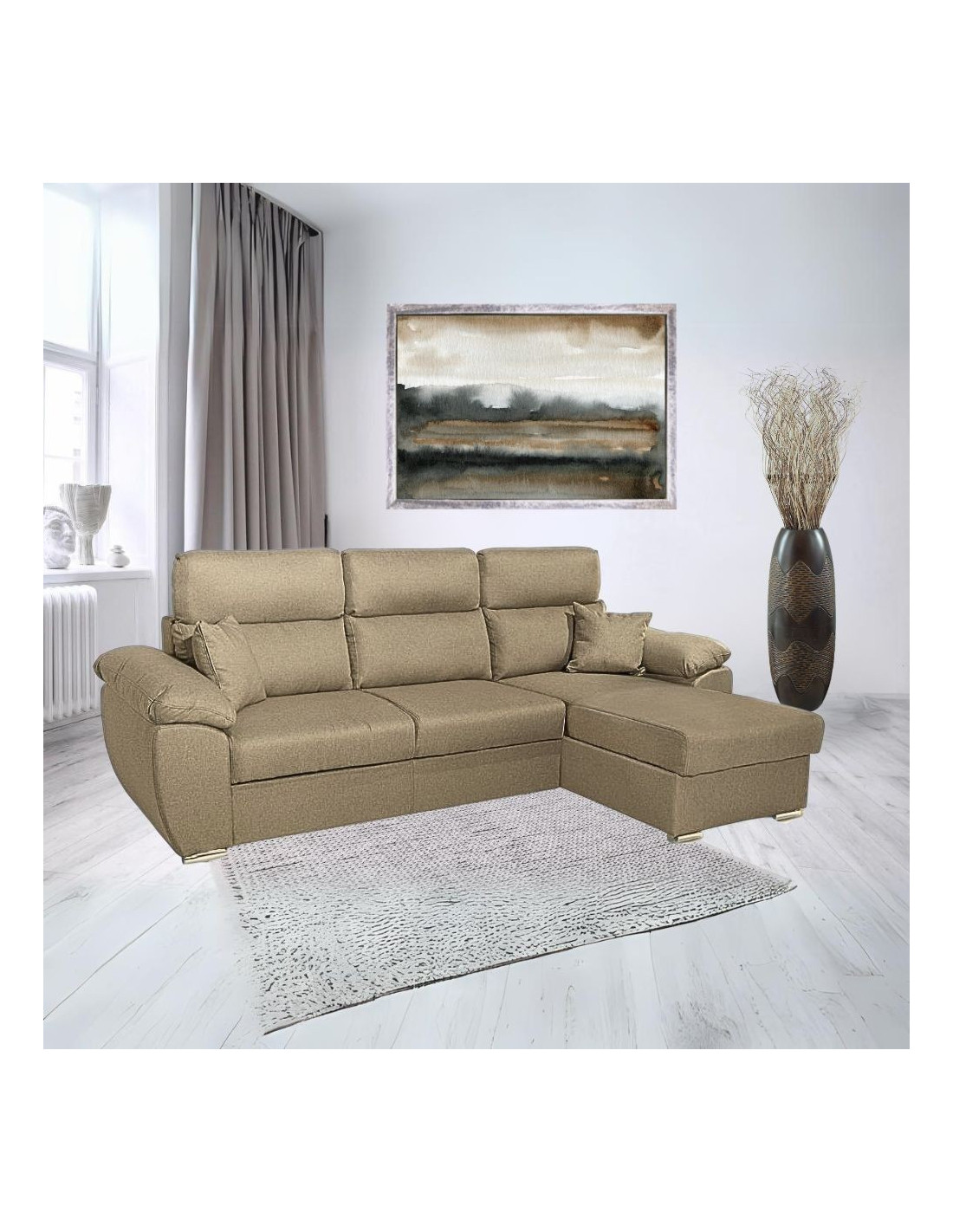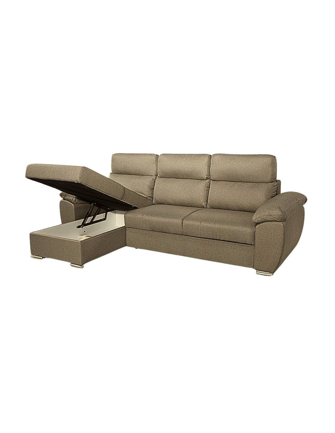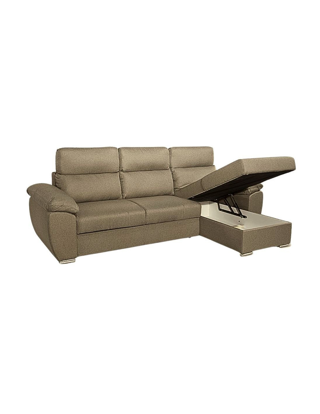 Divano Como II con penisola contenitore in tessuto giulia9703 cappuccino