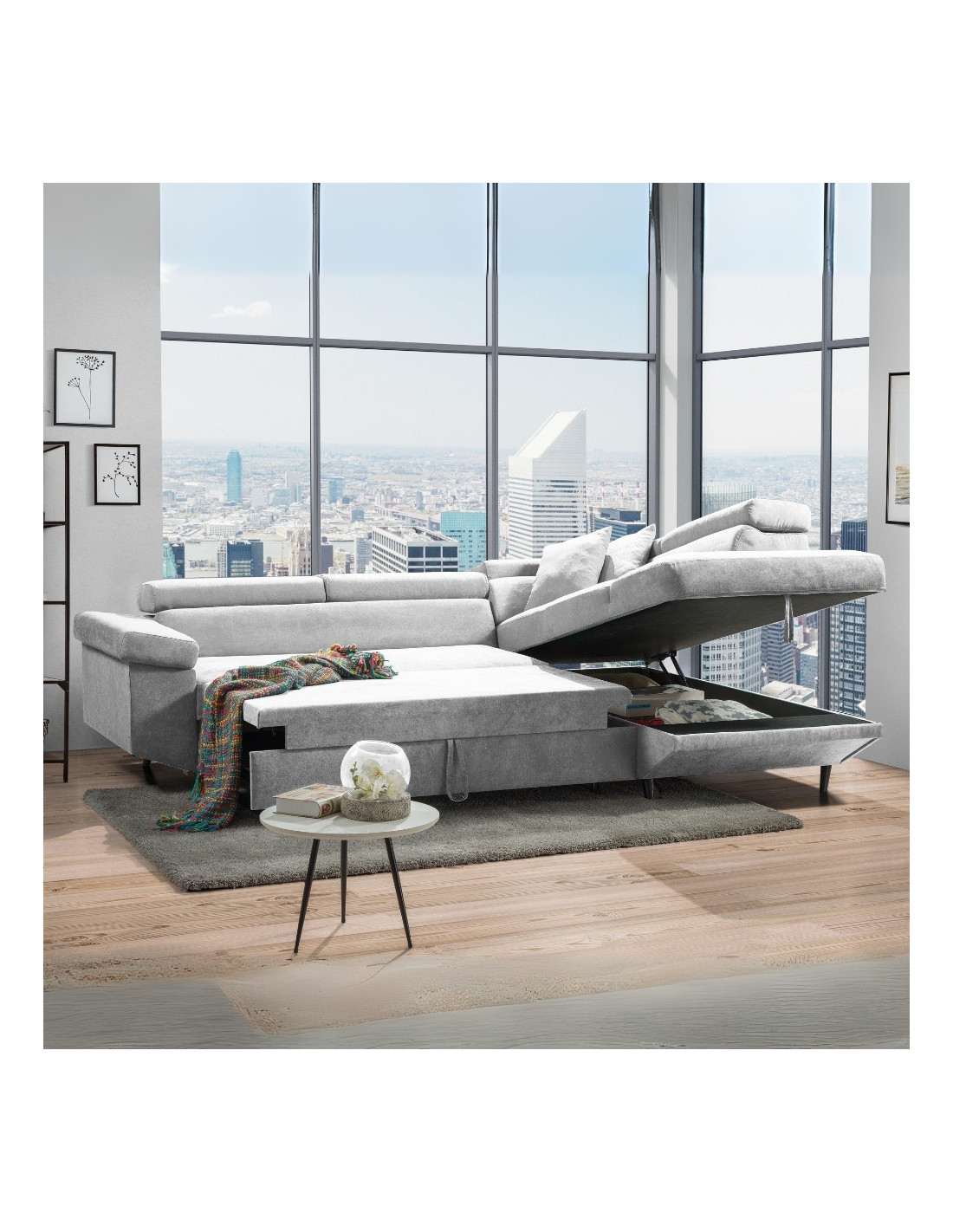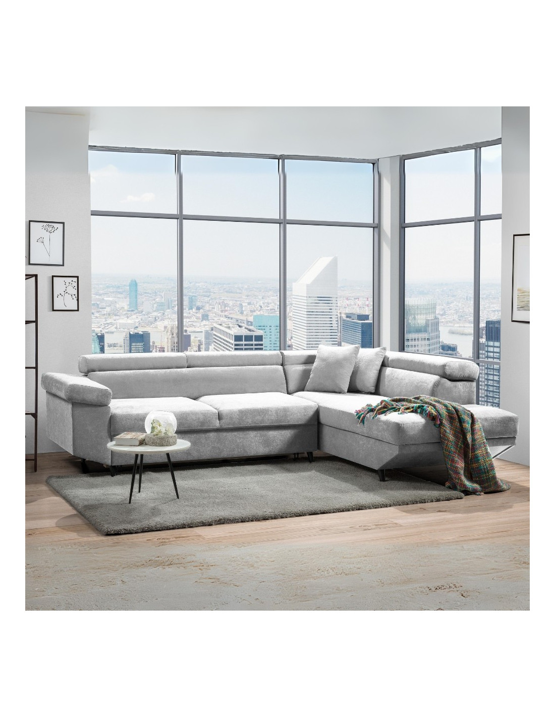 Divano letto Denver con penisola contenitore destra in Rondo 80 grigio chiaro