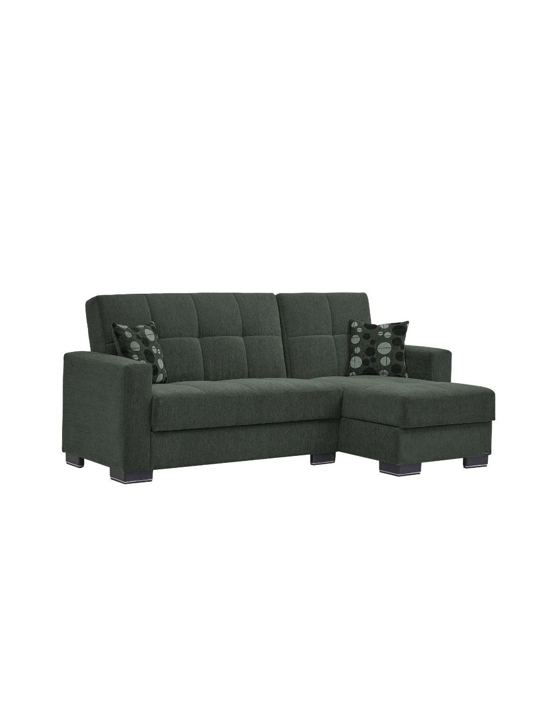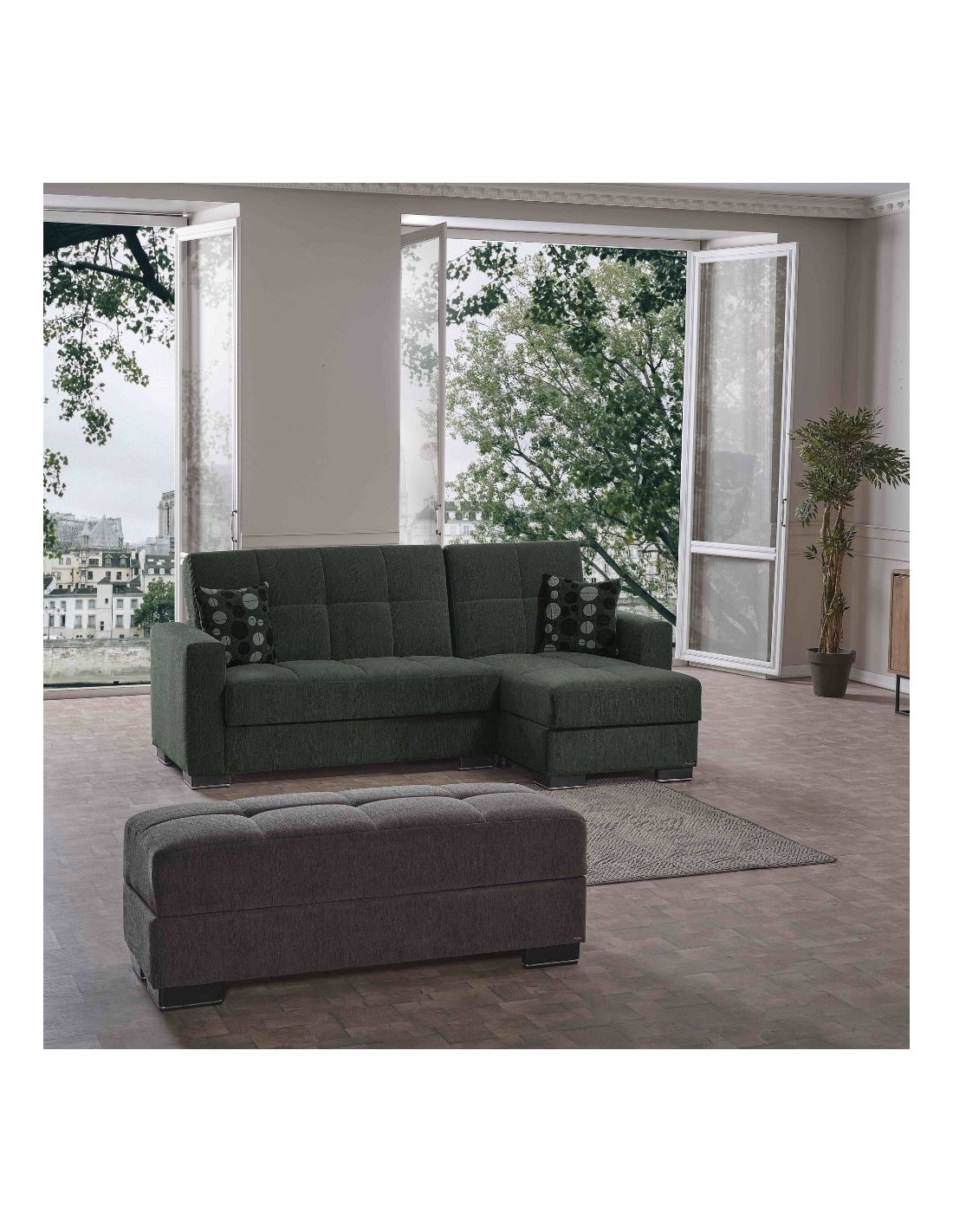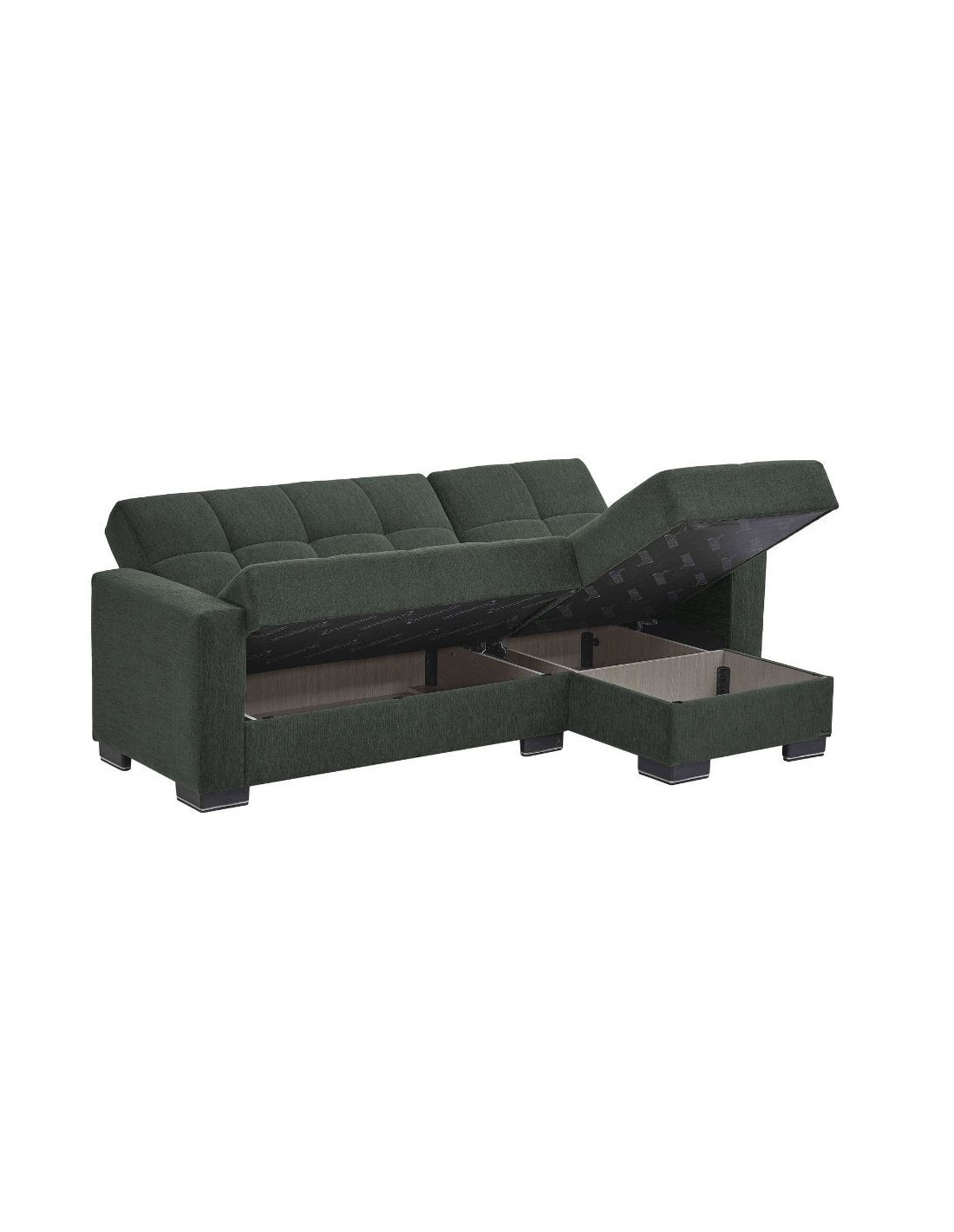 Divano letto con penisola Fermina Lounge con doppio contenitore in Crown 12 verde oliva