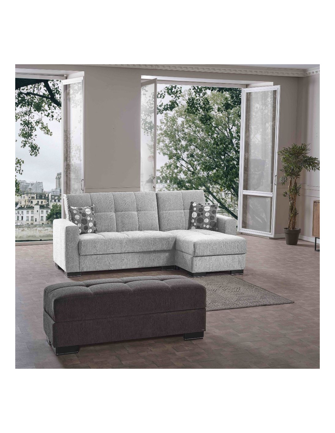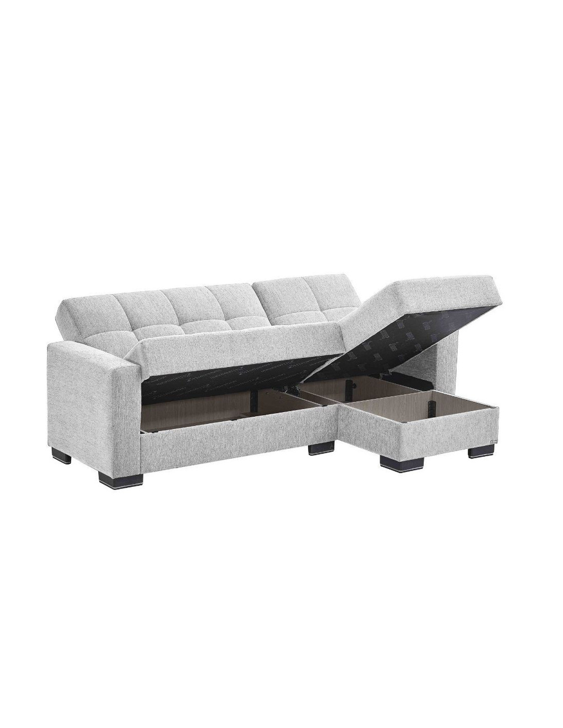 Divano letto con penisola Fermina Lounge con doppio contenitore in Crown 17 grigio chiaro