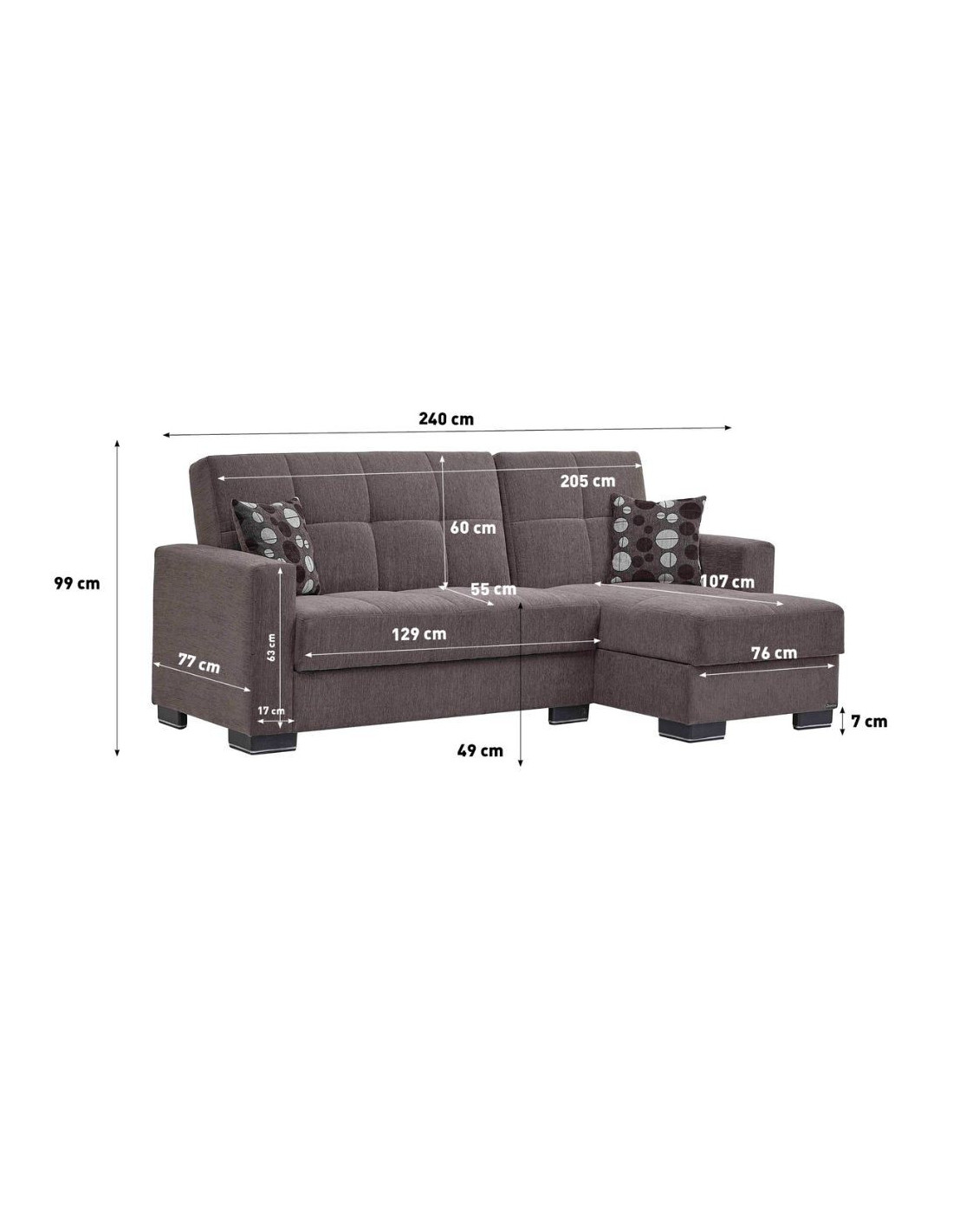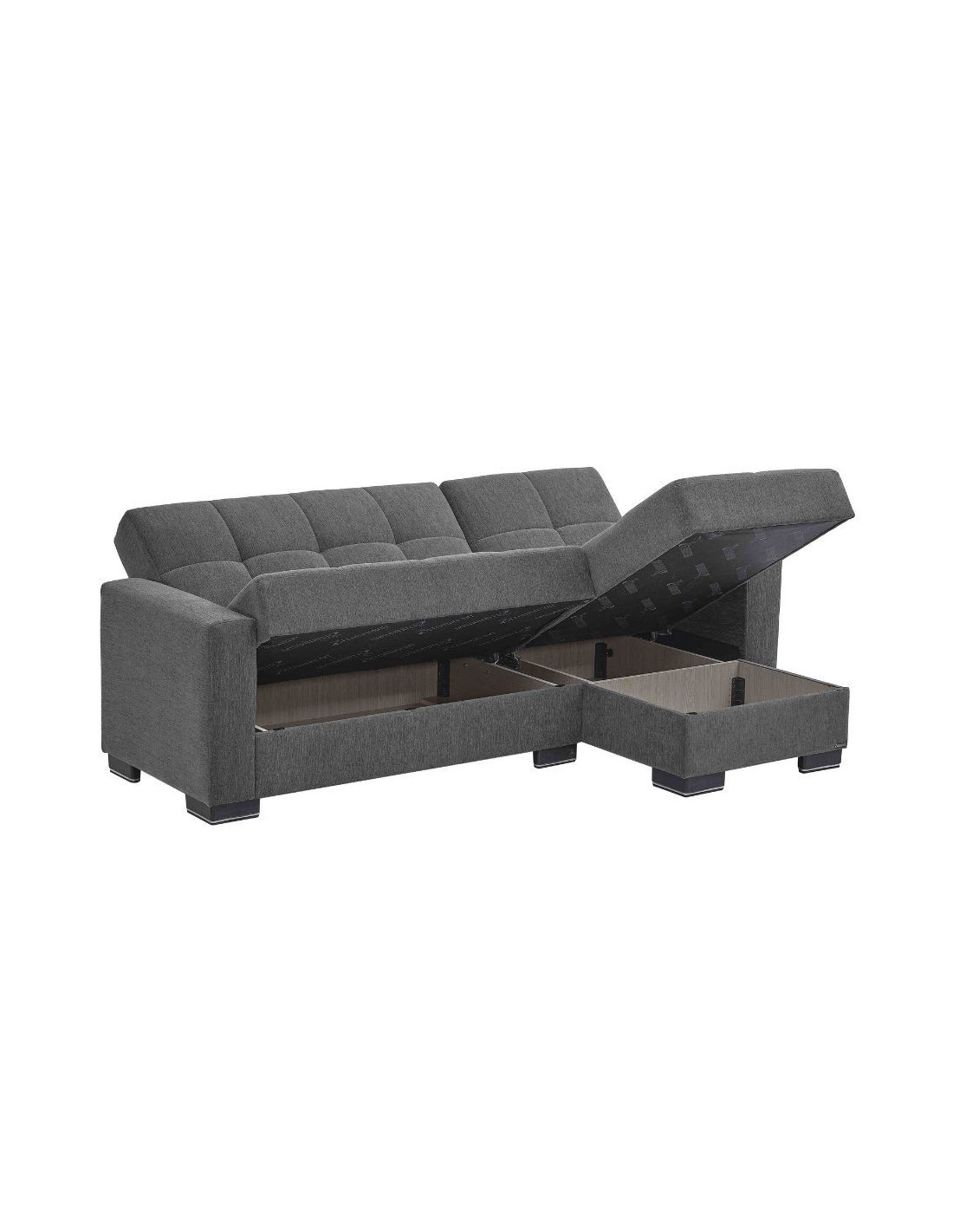 Divano letto con penisola Fermina Lounge con doppio contenitore in Crow 18 grigio