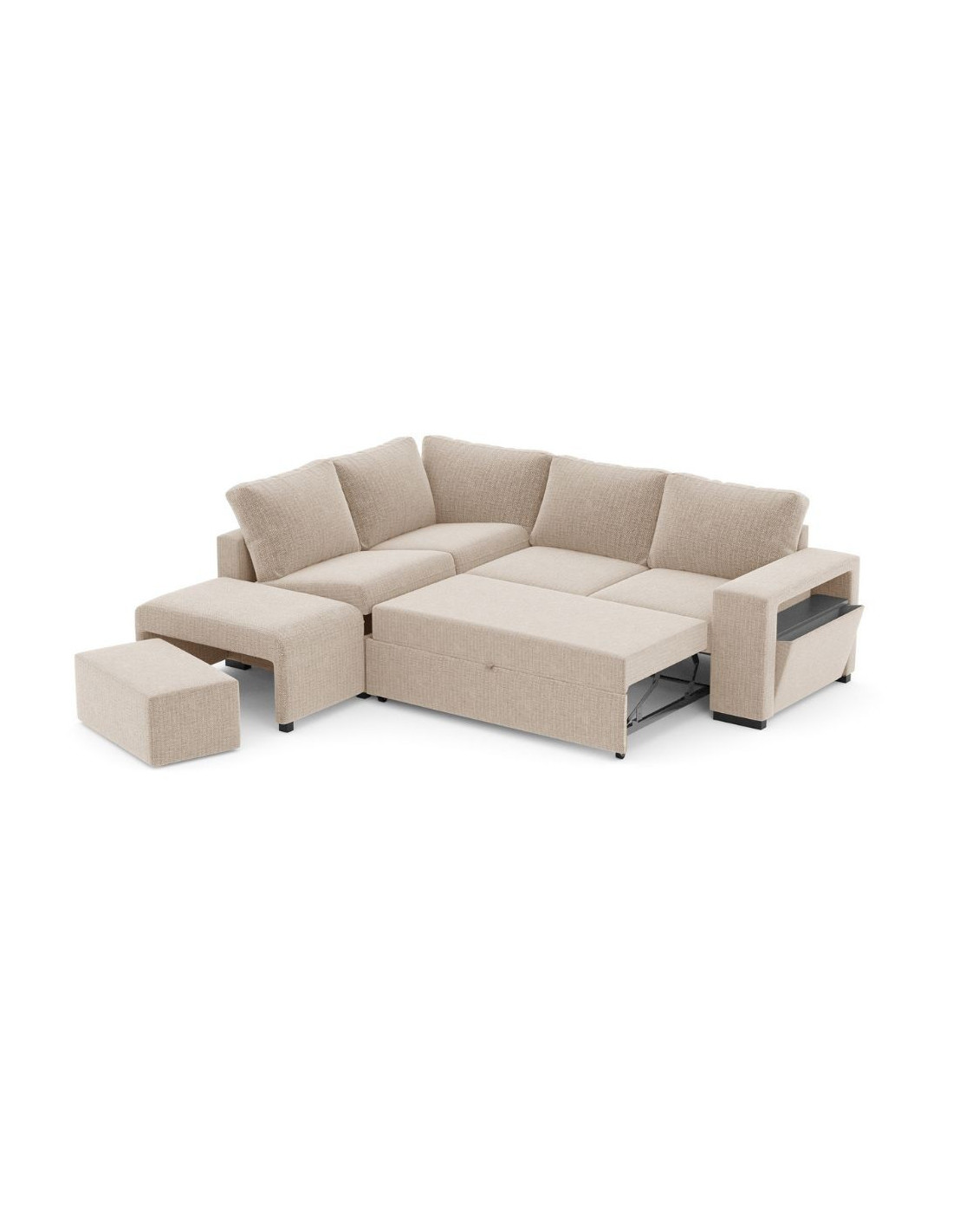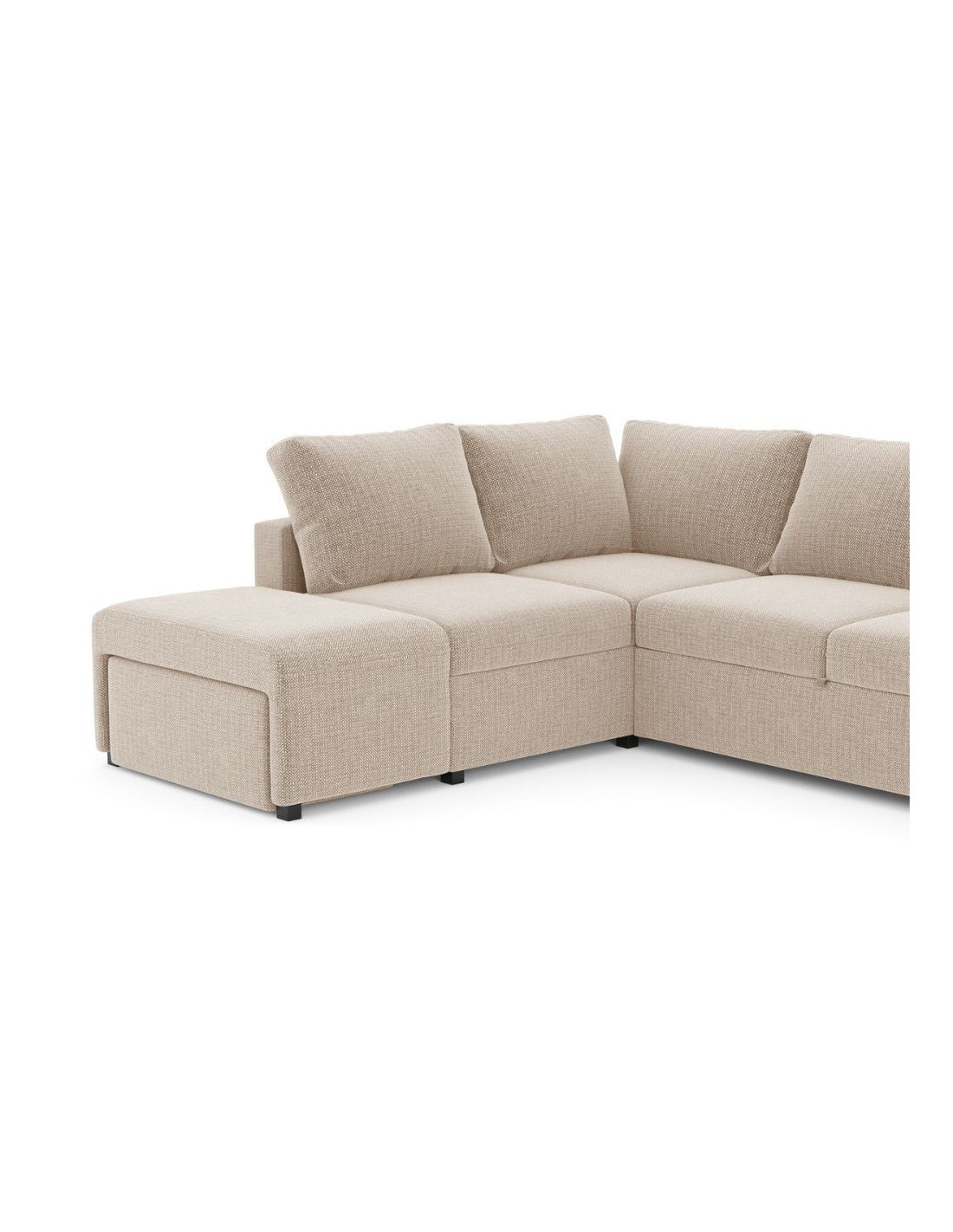 Divano letto angolare reversibile Jozzis con vano contenitore e pouf in tessuto Dubai G0741 sabbia