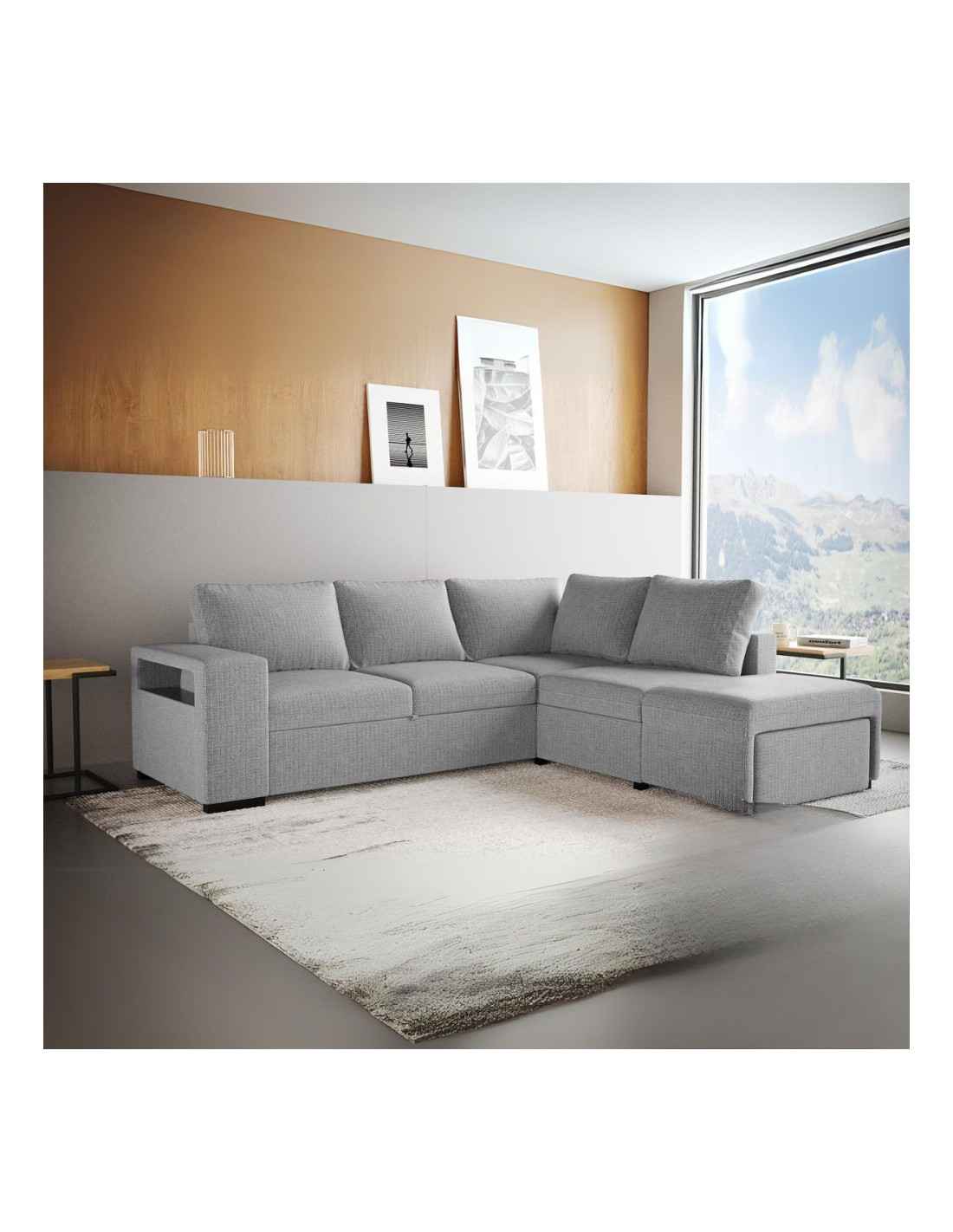 Divano letto angolare reversibile Jozzis con vano contenitore e pouf in tessuto Zenith C1756 grigio