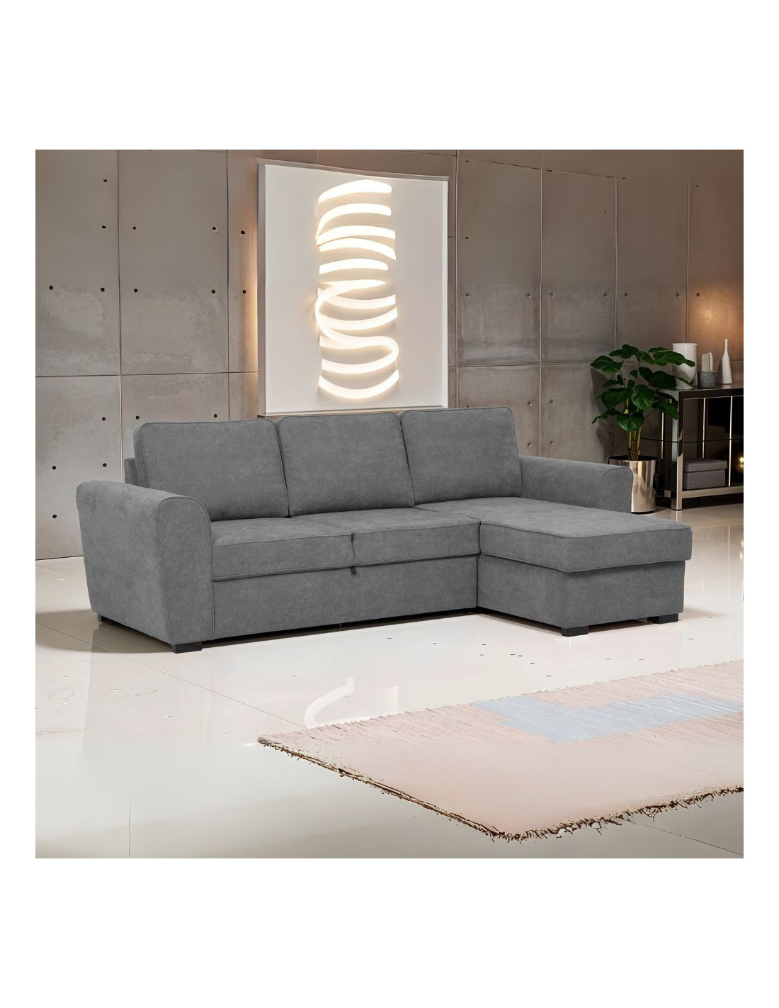 Divano letto corner reversibile Aston con contenitore in tessuto C1705 Ash grigio