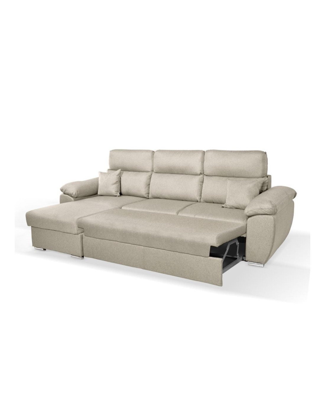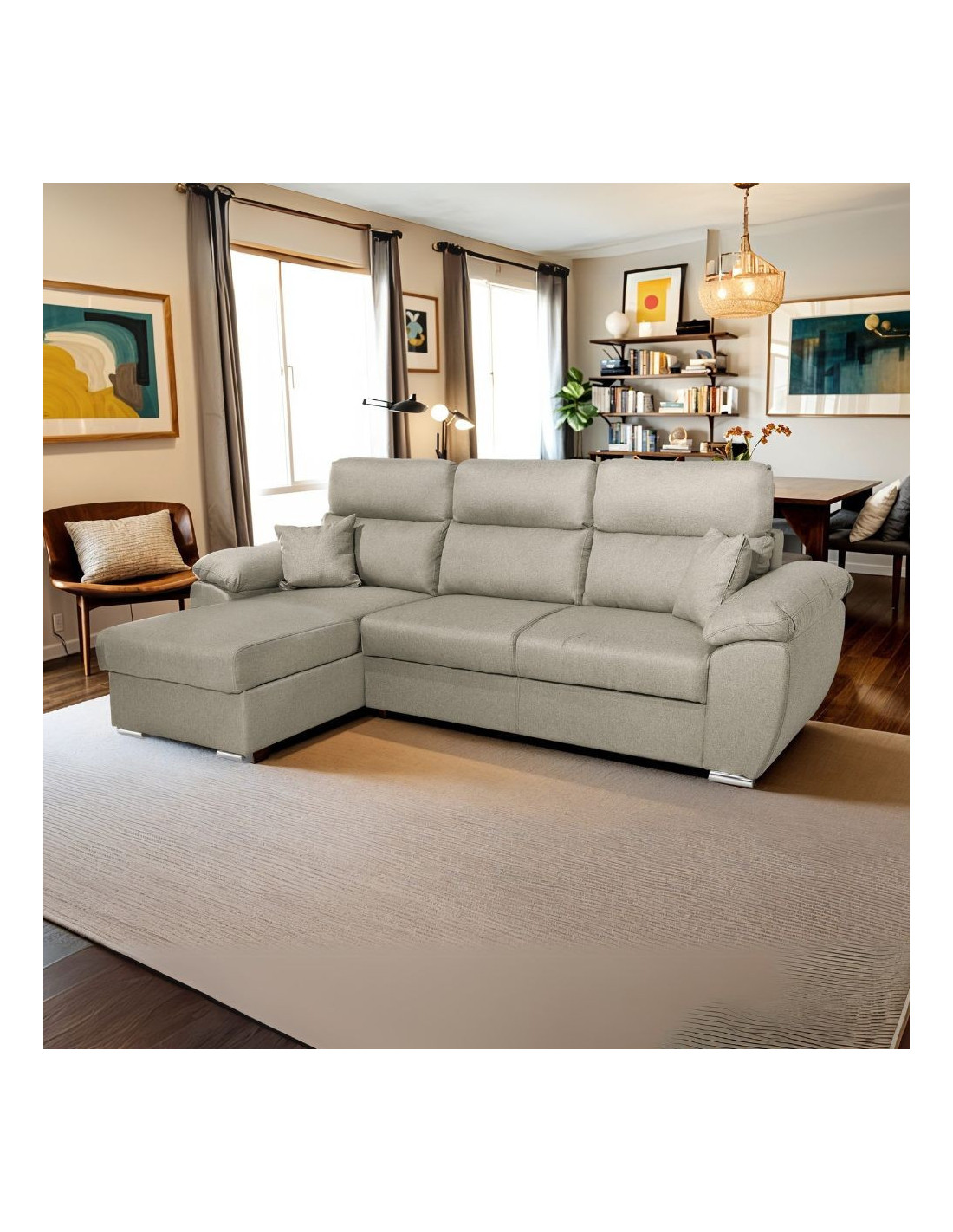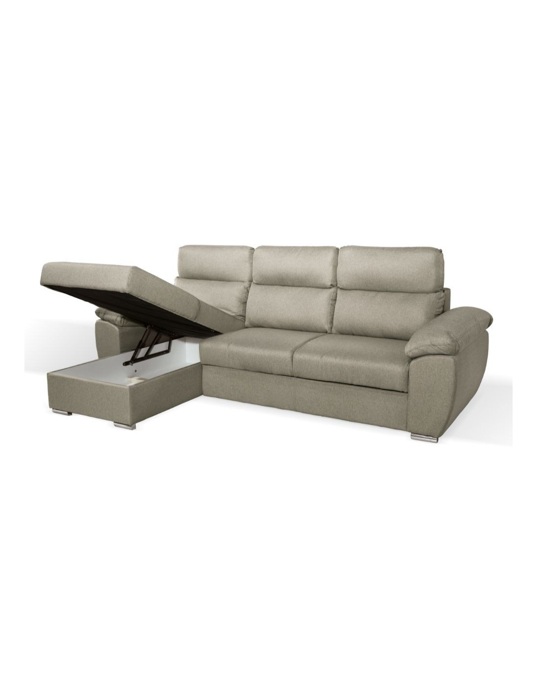 Divano Como II con penisola contenitore in tessuto Orinoco 24 tortora
