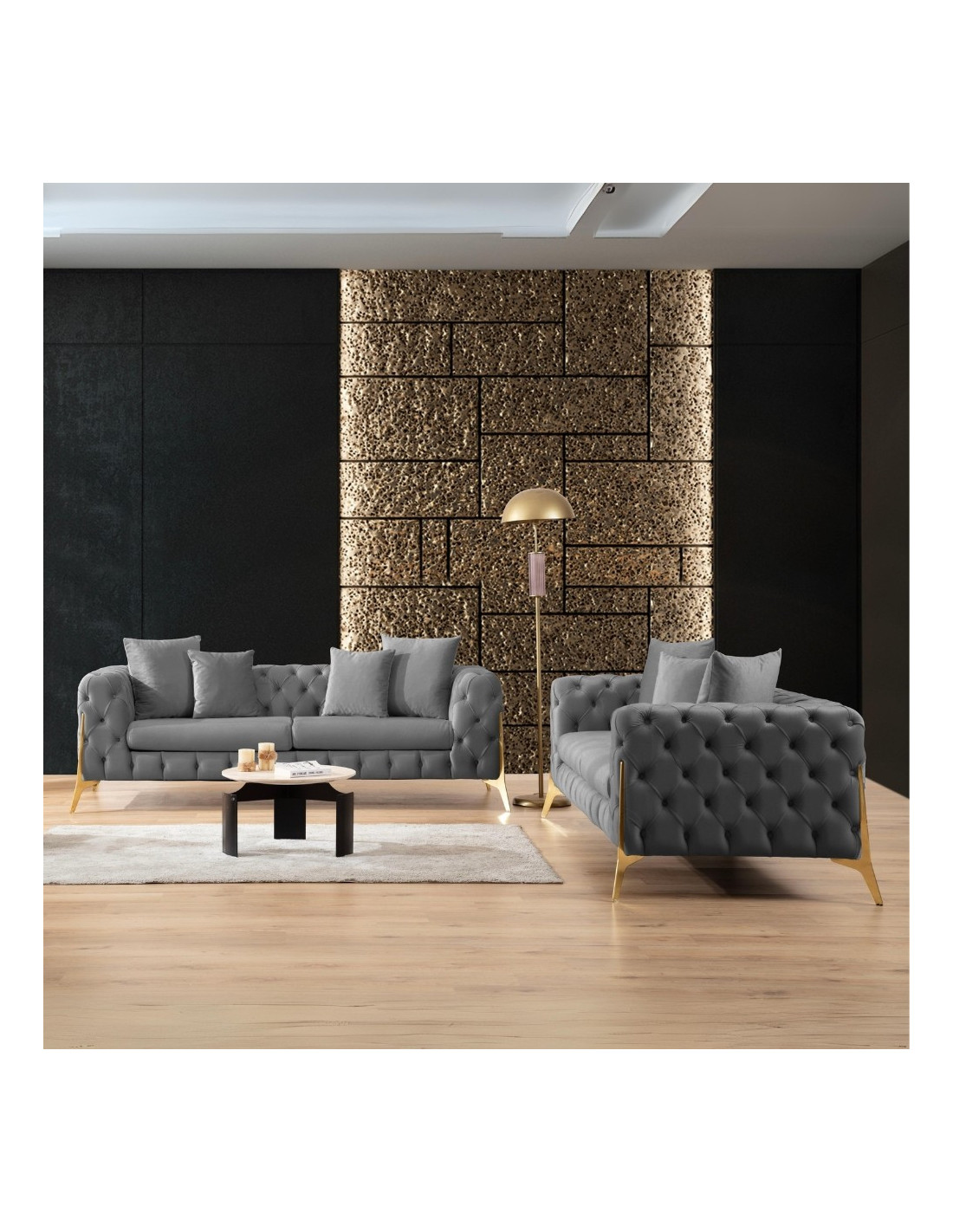 Divano Jaguar 3 posti in tessuto Babyface 20 grigio scuro con gambe oro