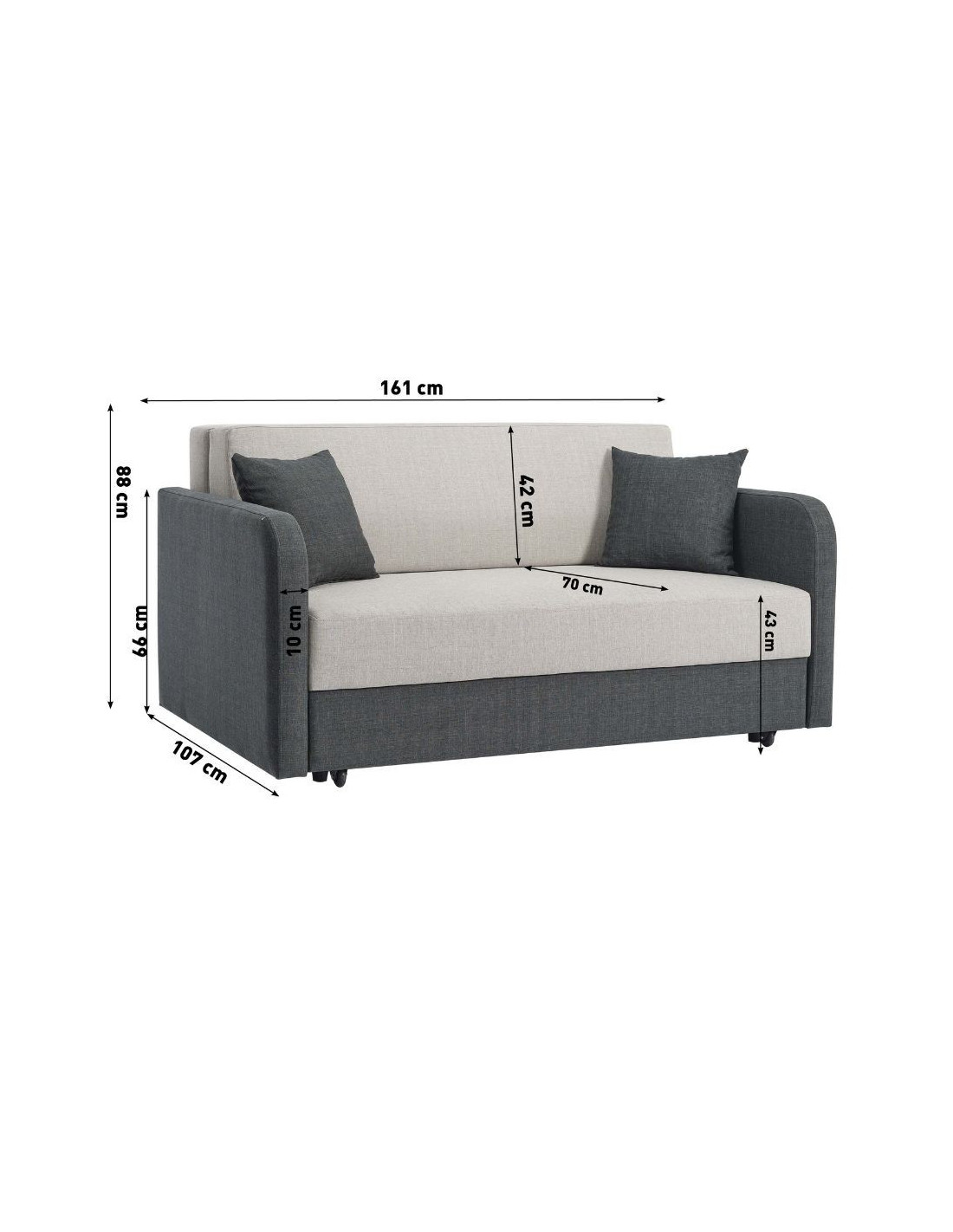 Divano letto Devin in Twist 20 grigio 161x107x88 H cm.