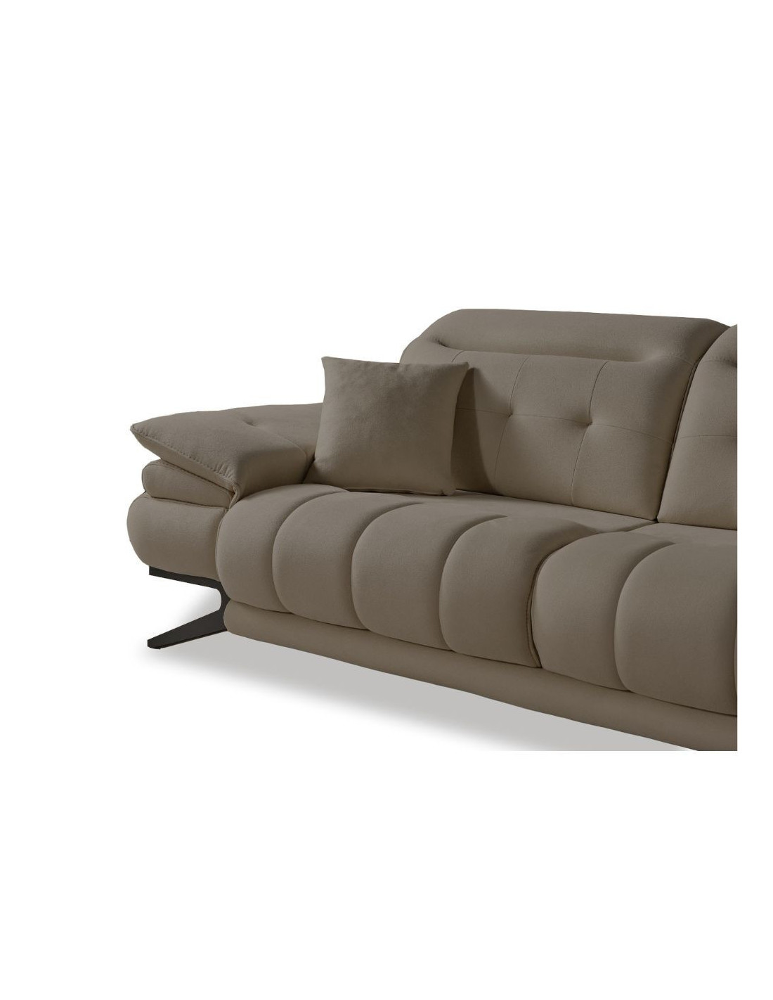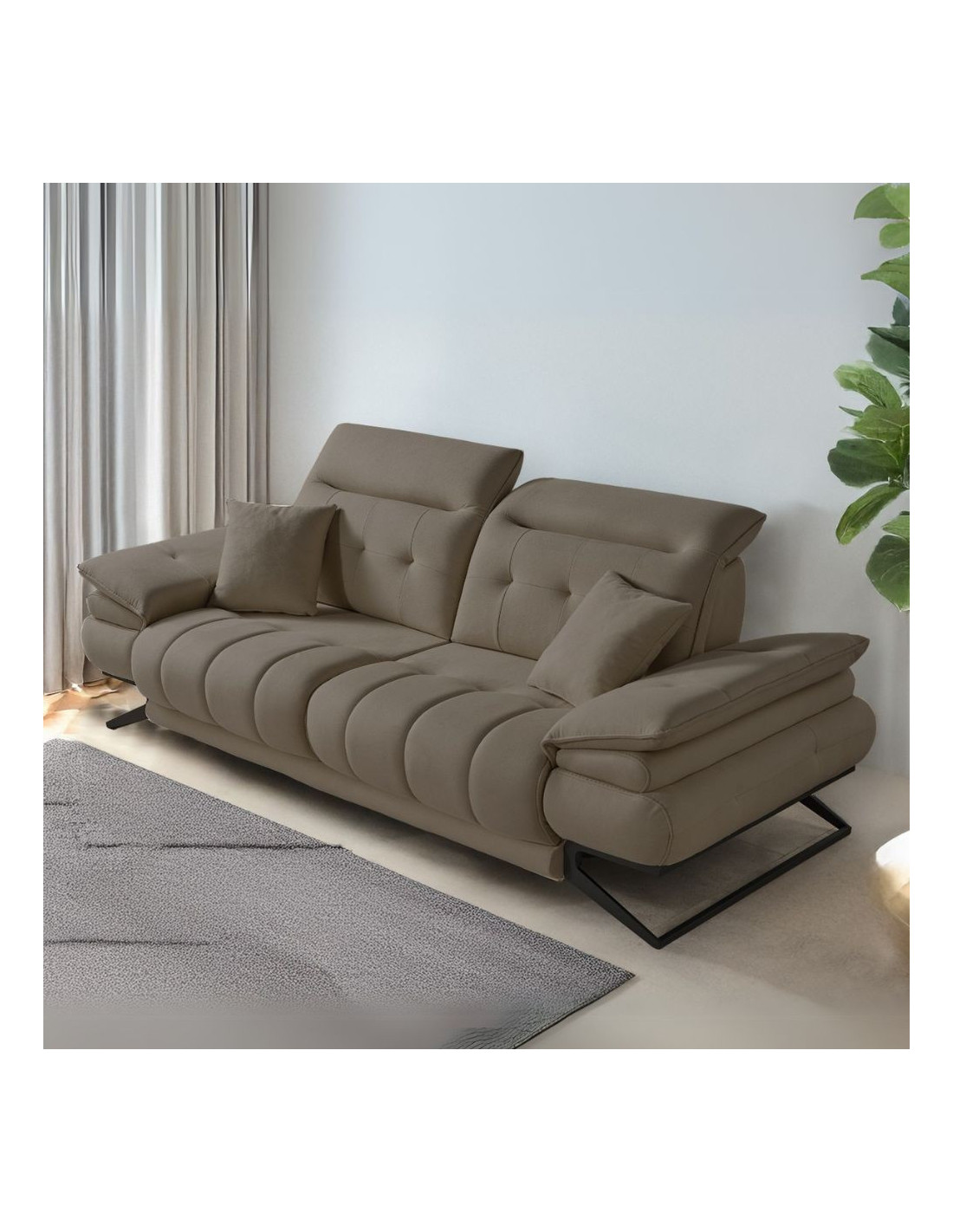 Divano Marzia 3 posti con schienali basculanti e poggiatesta reclinabili in tessuto buffalo 905 tortora