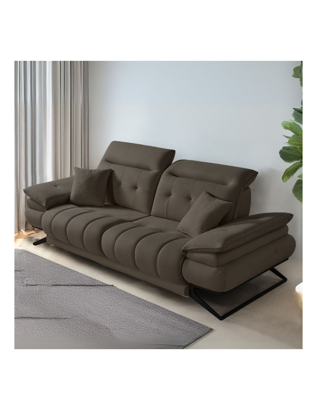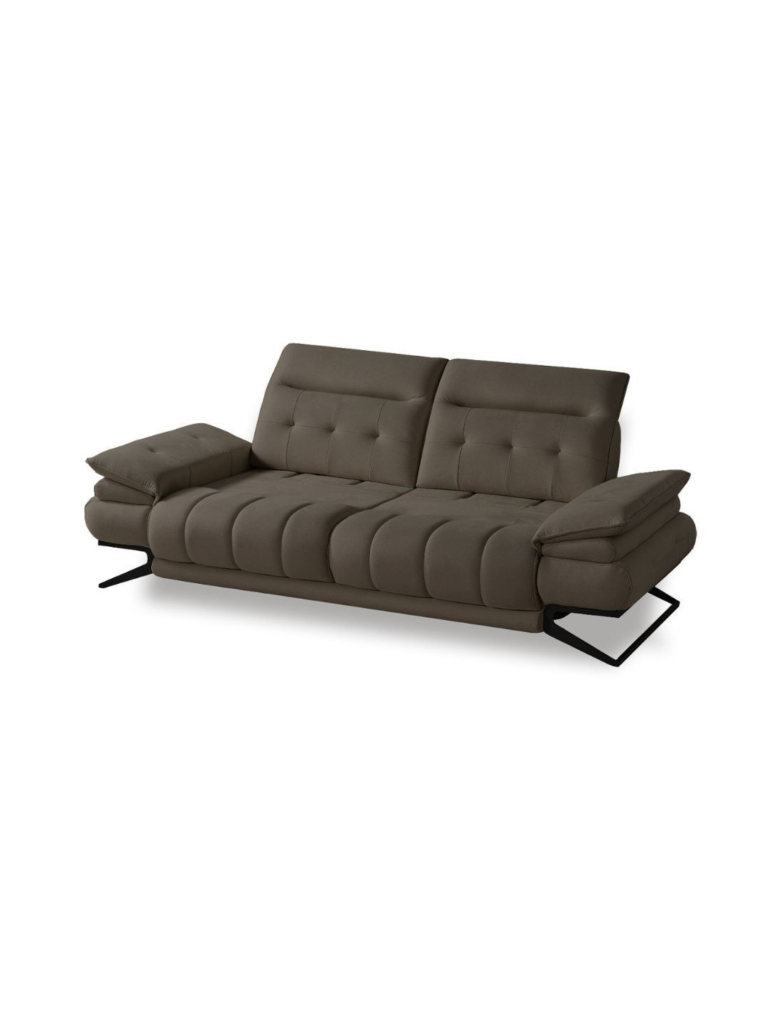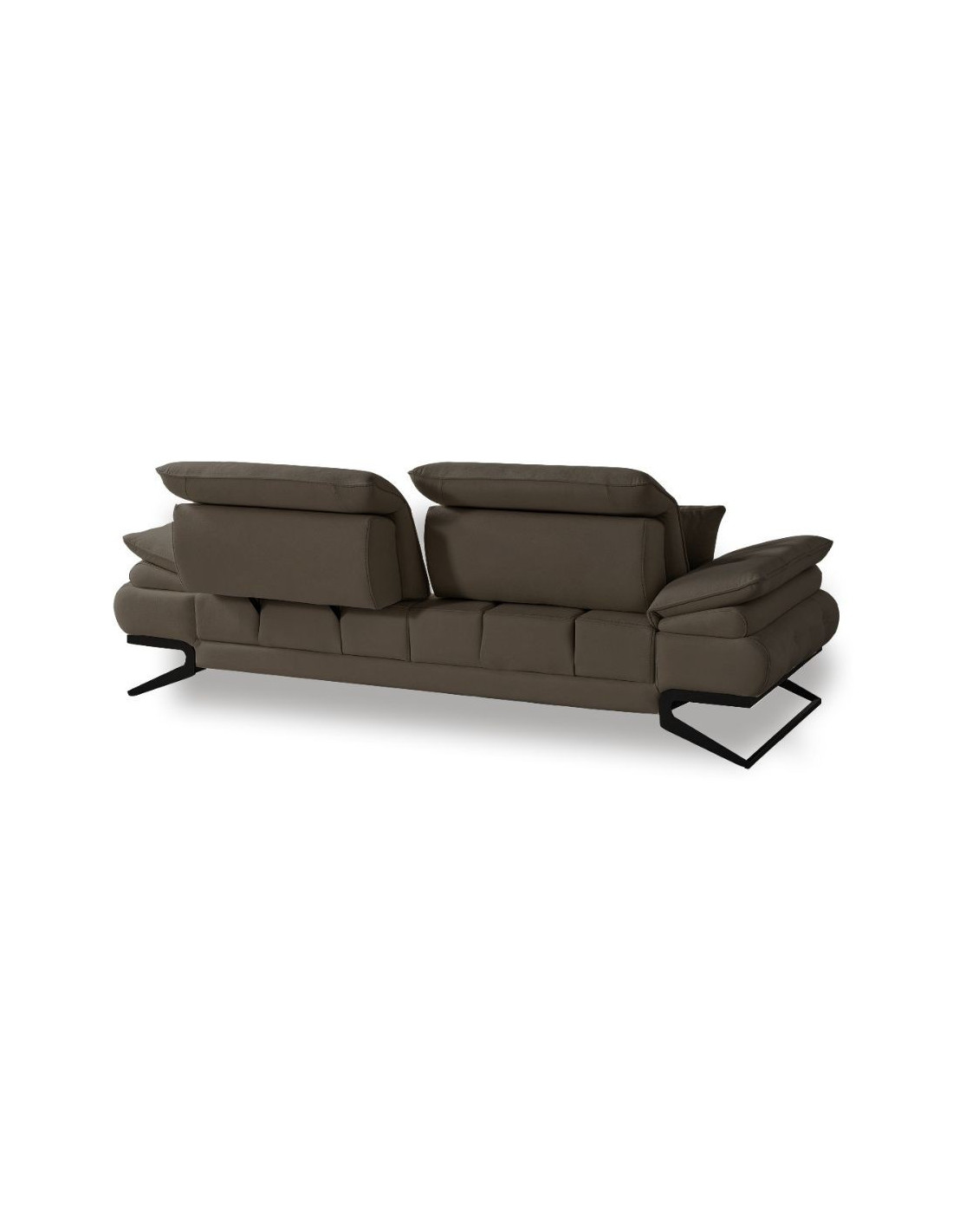 Divano Marzia 3 posti con schienali basculanti e poggiatesta reclinabili in tessuto buffalo 913 marrone