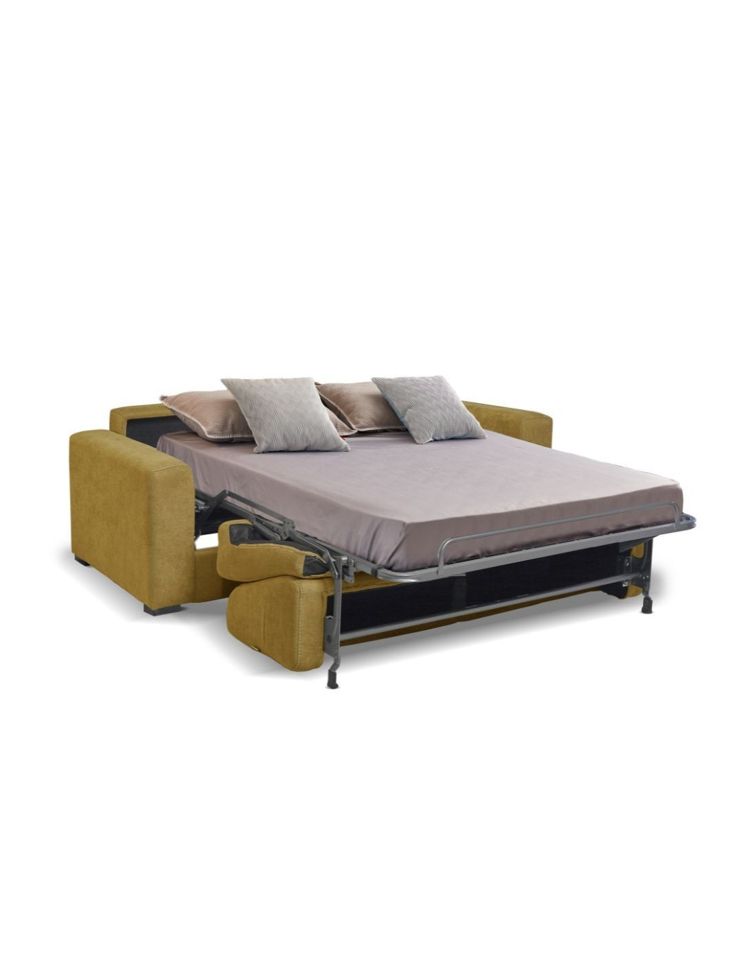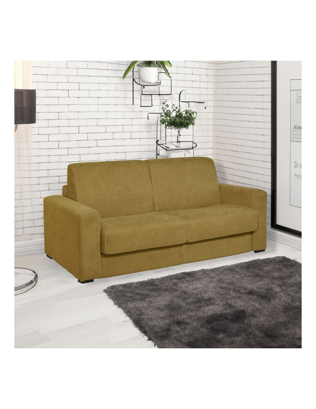Divano letto Kriog 3 posti con rete elettrosaldata in tessuto Barrel 48 senape