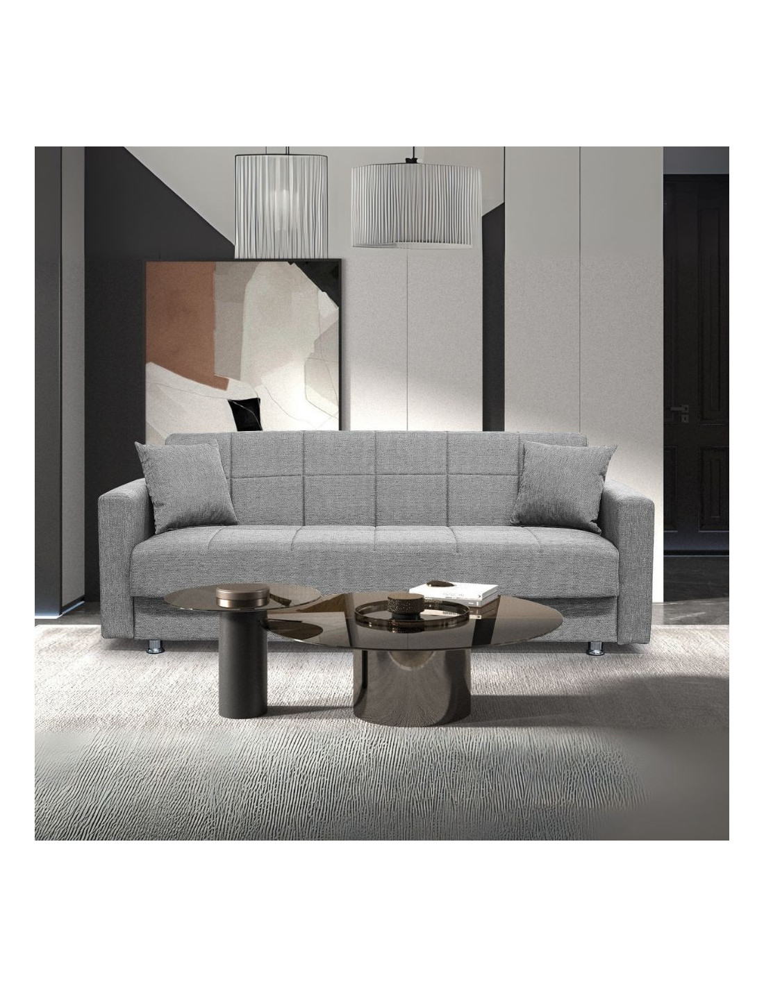 Divano Marbella 3 posti con letto contenitore in tessuto Mina 14 grigio chiaro