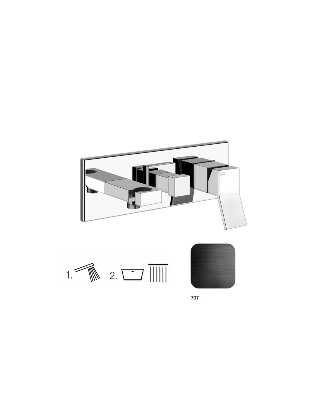 Miscelatore Gessi Doccia a parete 2 vie con deviatore serie Rettangolo K parte esterna cod.53140 incasso cod.44639 presa acqua e supporto doccetta