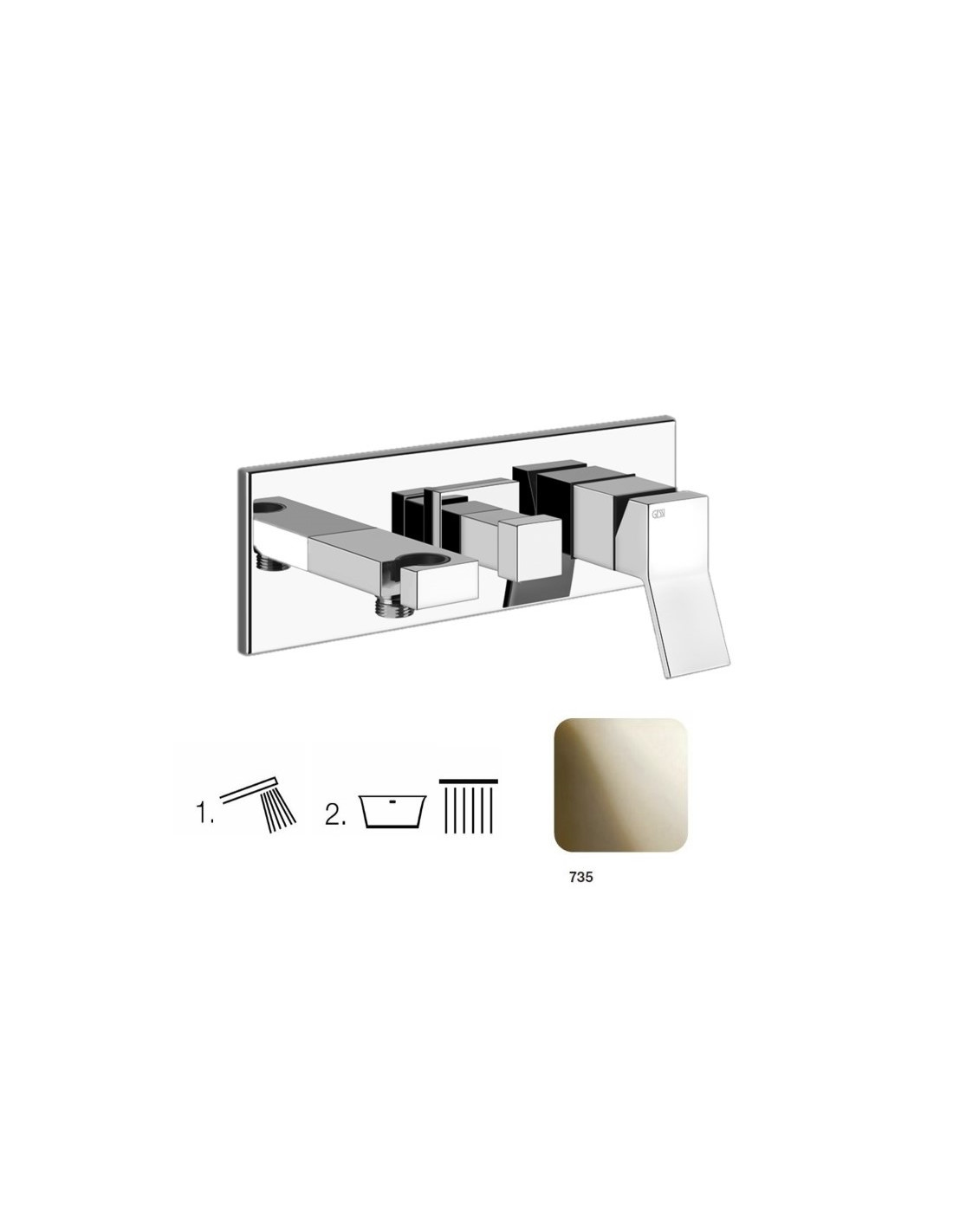 Miscelatore Doccia a parete esterno più parte incasso, 2 vie con deviatore, presa acqua e supporto doccetta, di Gessi, serie Rettangolo K, codice 53140 parte esterna, codice 44639 parte incasso, in ottone verniciato.