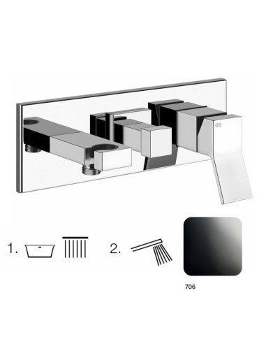 Miscelatore Gessi Doccia a parete 2 vie con deviatore serie Rettangolo K parte esterna cod.53141 incasso cod.44639 presa acqua e supporto doccetta
