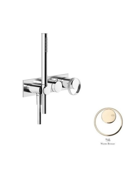 Miscelatore doccia a parete 2 vie, serie Anello, parte esterna codice 63343 2 vie, con deviatore, presa acqua e supporto doccetta, Parte incasso codice 54139 2 vie.