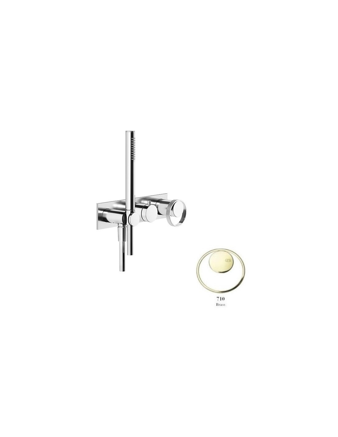 Miscelatore doccia a parete 2 vie, serie Anello, parte esterna codice 63343 2 vie, con deviatore, presa acqua e supporto doccetta, Parte incasso codice 54139 2 vie.