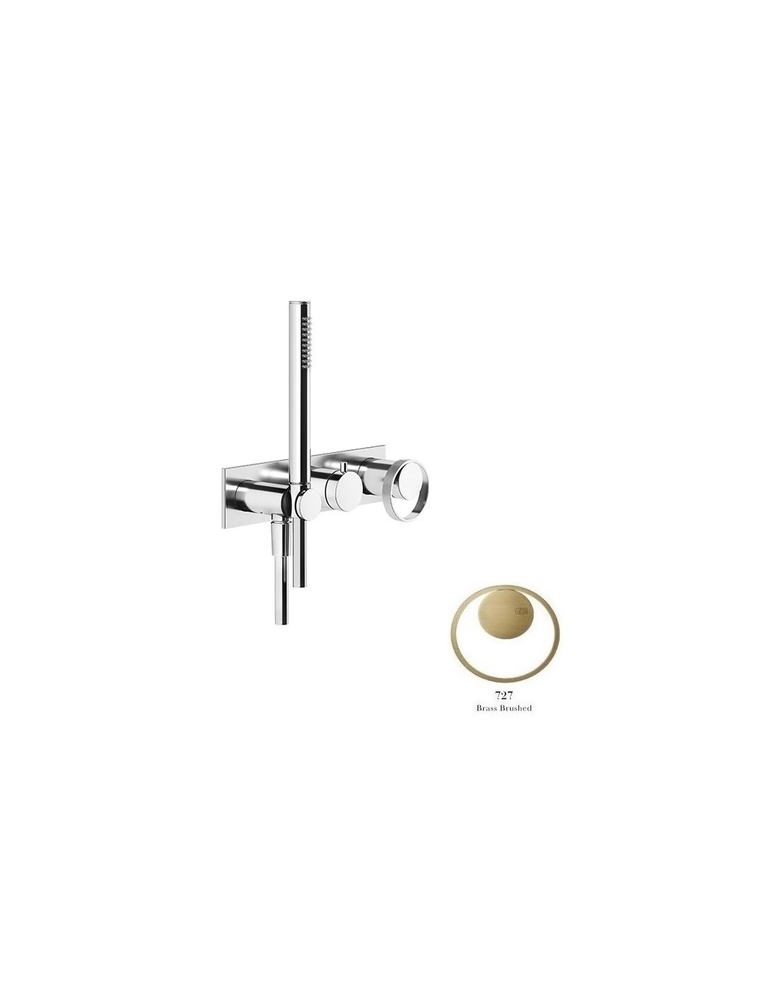 Miscelatore doccia a parete 2 vie, serie Anello, parte esterna codice 63343 2 vie, con deviatore, presa acqua e supporto doccetta, Parte incasso codice 54139 2 vie.