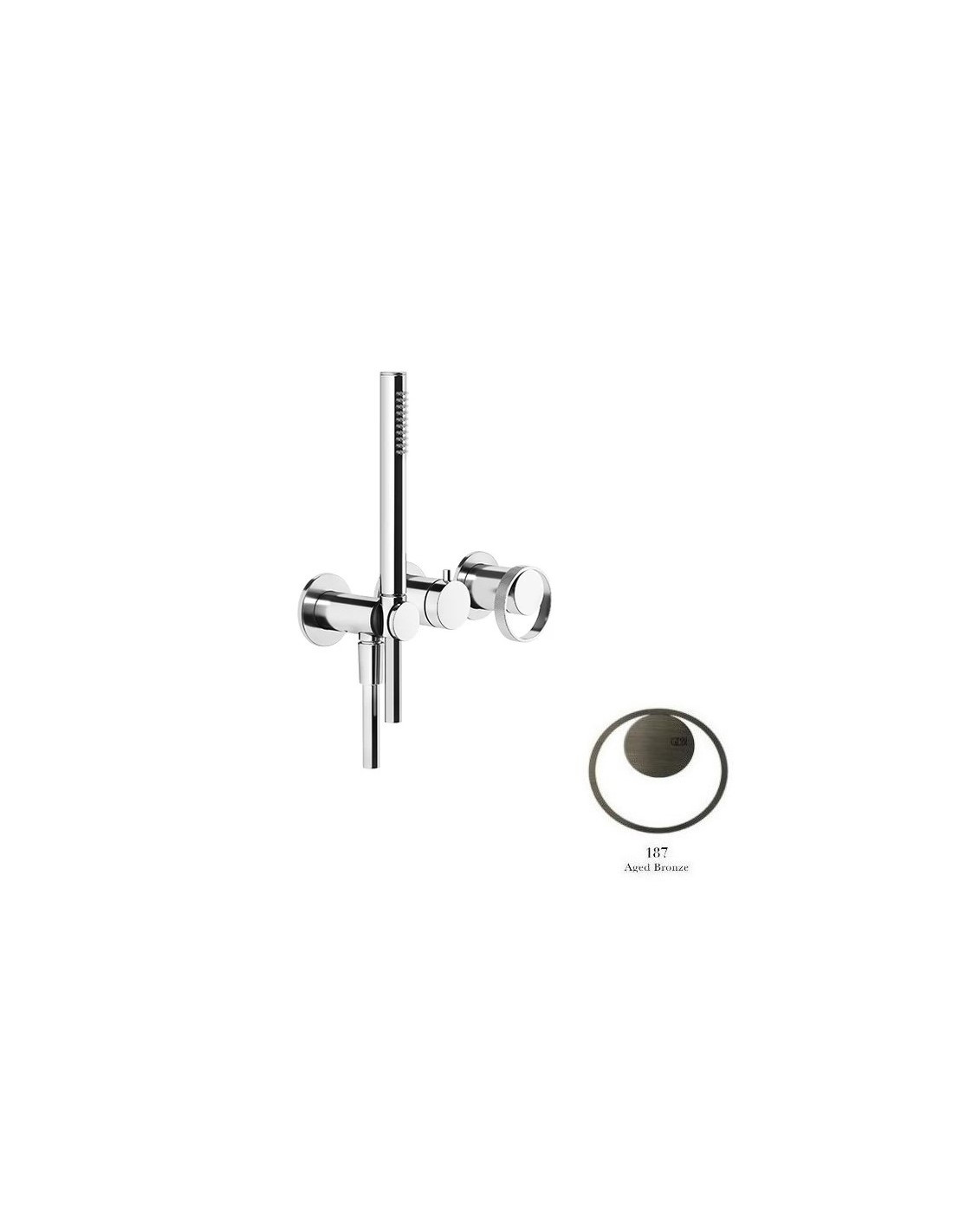 Miscelatore doccia Gessi a parete Serie Anello cod.63345 esterno doccia con deviatore presa acqua e supporto doccetta cod.54139 incasso doccia 2 vie