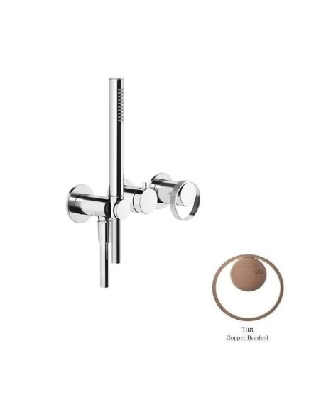 Miscelatore doccia a parete 2 vie, serie Anello, parte esterna codice 63345 2 vie, con deviatore, presa acqua e supporto doccetta, Parte incasso codice 54139 2 vie.