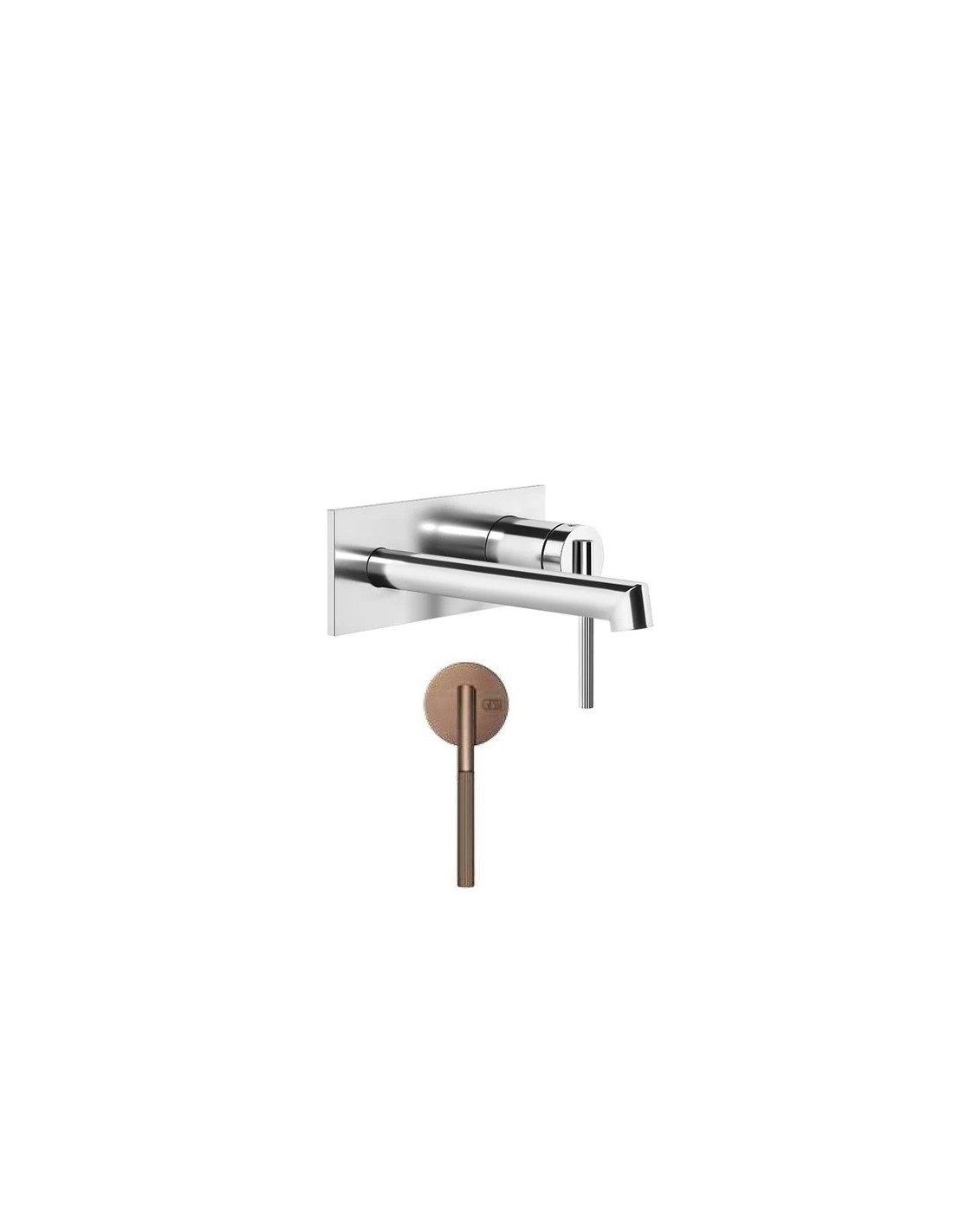 Miscelatore a parete bocca corta, di Gessi, serie Ingranaggio, codice 63588 parte esterna, codice 63397 parte incasso, in ottone verniciato.