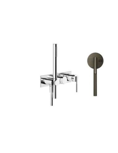 Miscelatore doccia a parete 2 vie, serie Ingranaggio, parte esterna codice 63543 2 vie, con deviatore, presa acqua e supporto doccetta, Parte incasso codice 54139 2 vie.