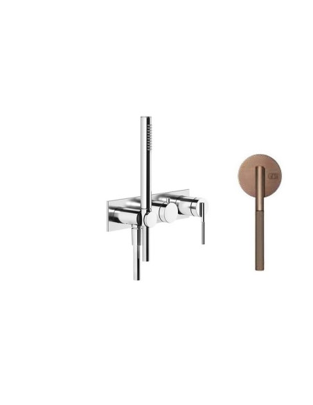 Miscelatore doccia a parete 2 vie, serie Ingranaggio, parte esterna codice 63543 2 vie, con deviatore, presa acqua e supporto doccetta, Parte incasso codice 54139 2 vie.