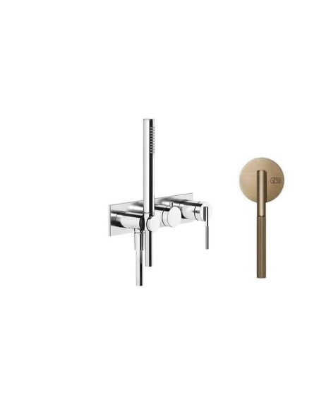 Miscelatore doccia Gessi a parete Serie Ingranaggio cod.63543 esterno doccia con deviatore presa acqua e supporto doccetta co...