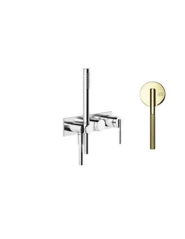 Miscelatore doccia a parete 2 vie, serie Ingranaggio, parte esterna codice 63543 2 vie, con deviatore, presa acqua e supporto doccetta, Parte incasso codice 54139 2 vie.