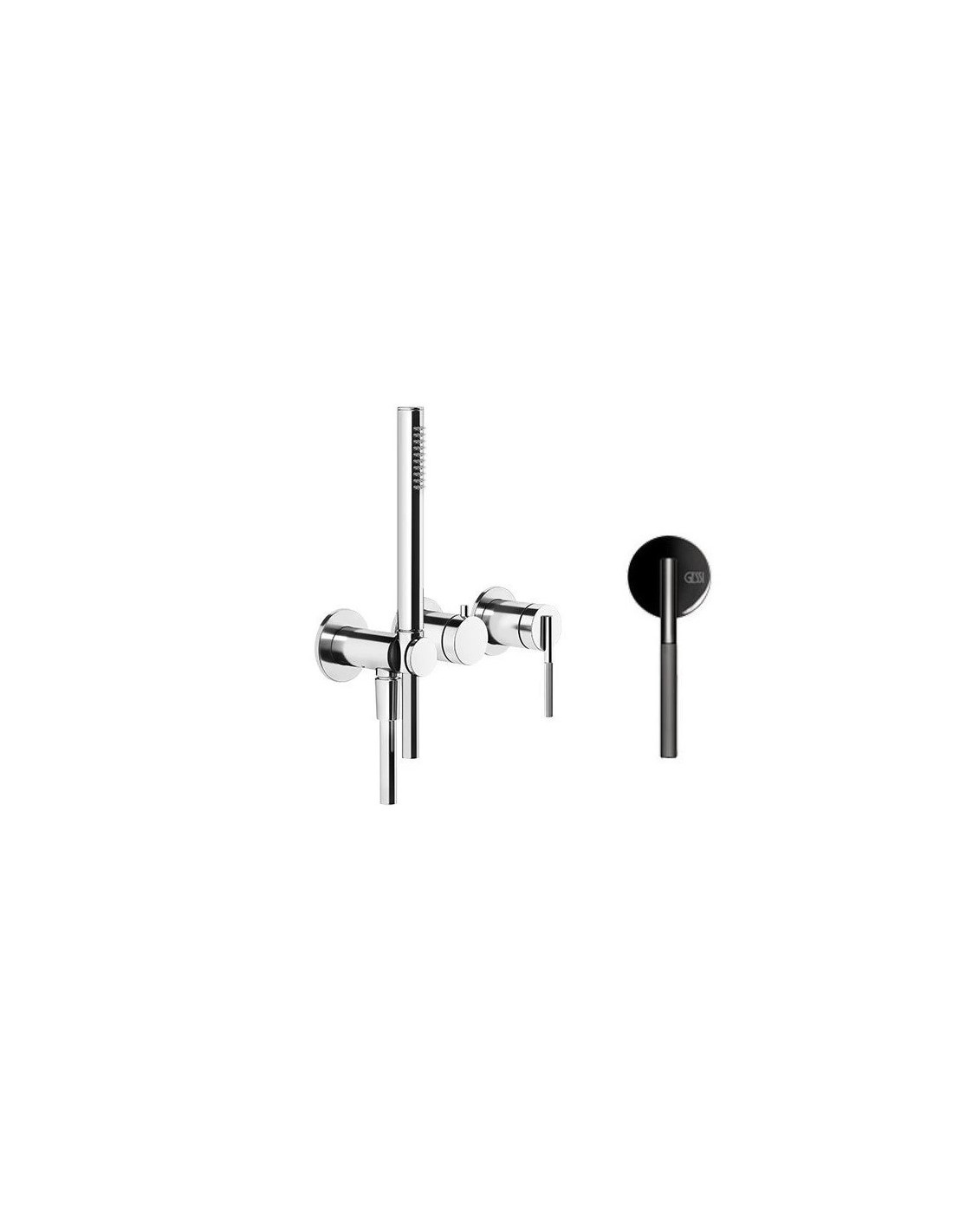 Miscelatore doccia Gessi a parete Serie Ingranaggio cod.63545 esterno doccia con deviatore presa acqua e supporto doccetta cod.54139 incasso doccia 2 vie