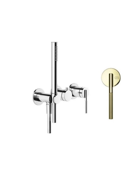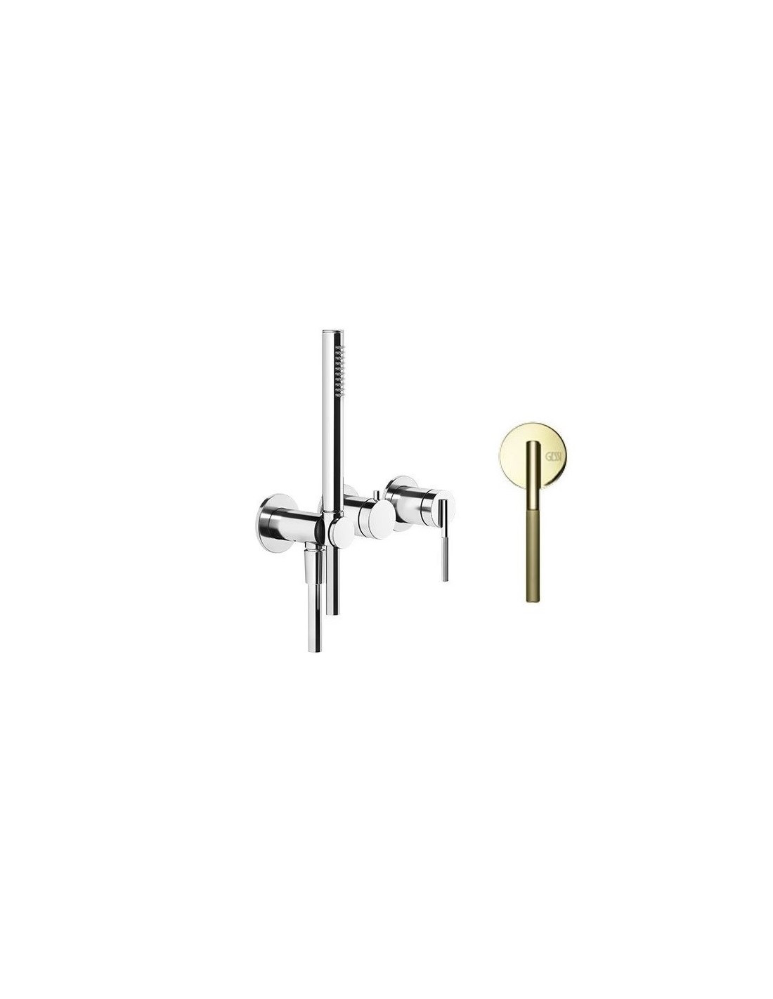 Miscelatore doccia a parete 2 vie, serie Ingranaggio, parte esterna codice 63545 2 vie, con deviatore, presa acqua e supporto doccetta, Parte incasso codice 54139 2 vie.