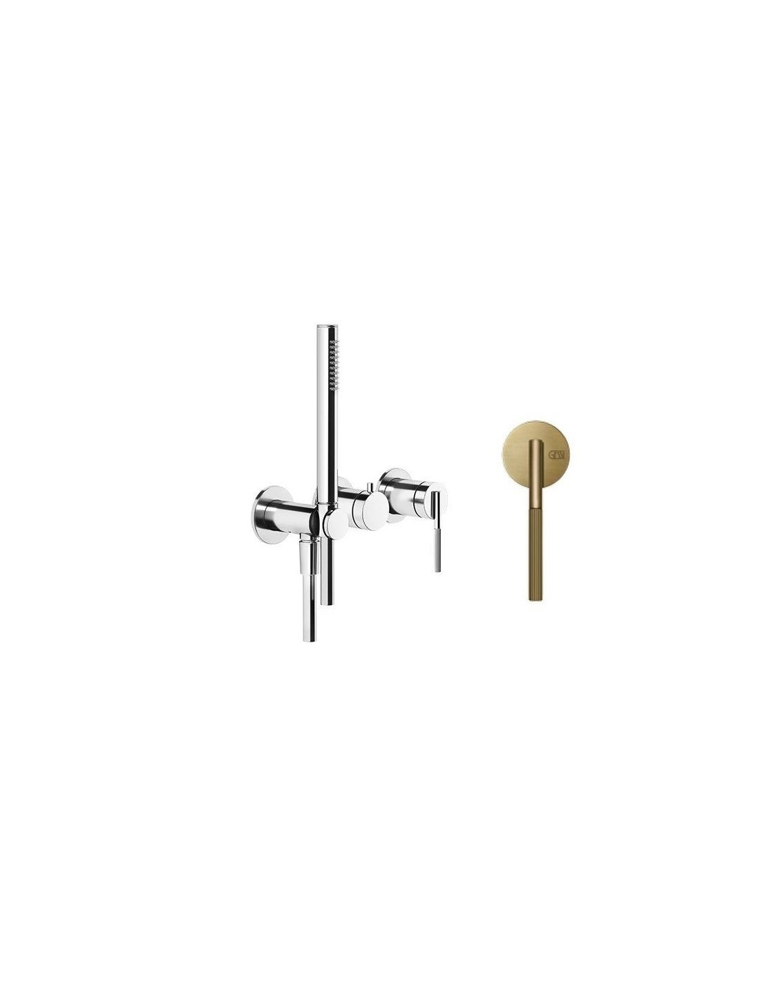 Miscelatore doccia a parete 2 vie, serie Ingranaggio, parte esterna codice 63545 2 vie, con deviatore, presa acqua e supporto doccetta, Parte incasso codice 54139 2 vie.